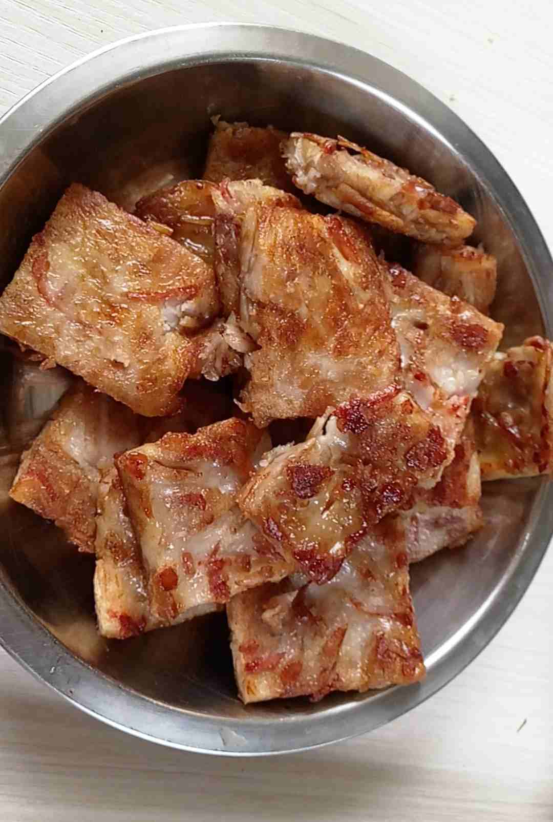 我家大厨为我跟我家比比仔准备的下午茶!做法1.香芋去皮切块蒸熟后压成泥状,加少量虾米,葱花,肉碎 (备注自己喜欢放什么配料都可以)2.用粘米粉加水搅成糊,倒入香芋搅匀 3.放入容器 4.放入锅中隔水蒸 5.蒸熟后放冷切块,煎至金黄色!!!