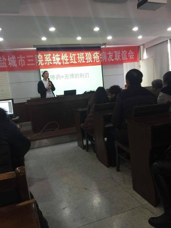 我是一名红斑狼疮的患者,有幸于在2017年11月18日再一次参加盐城第三人民医院(北院)风湿免疫科举行的红斑狼疮联谊会。冬季的盐城气温特别冷,外面的浓雾还没有完全散去,丝毫挡不住病人及家属的热情。推开北三院药剂四楼会议室大门,里面一派热闹景象,人们在彼此的问候中感受到了阵阵浓浓的暖意。