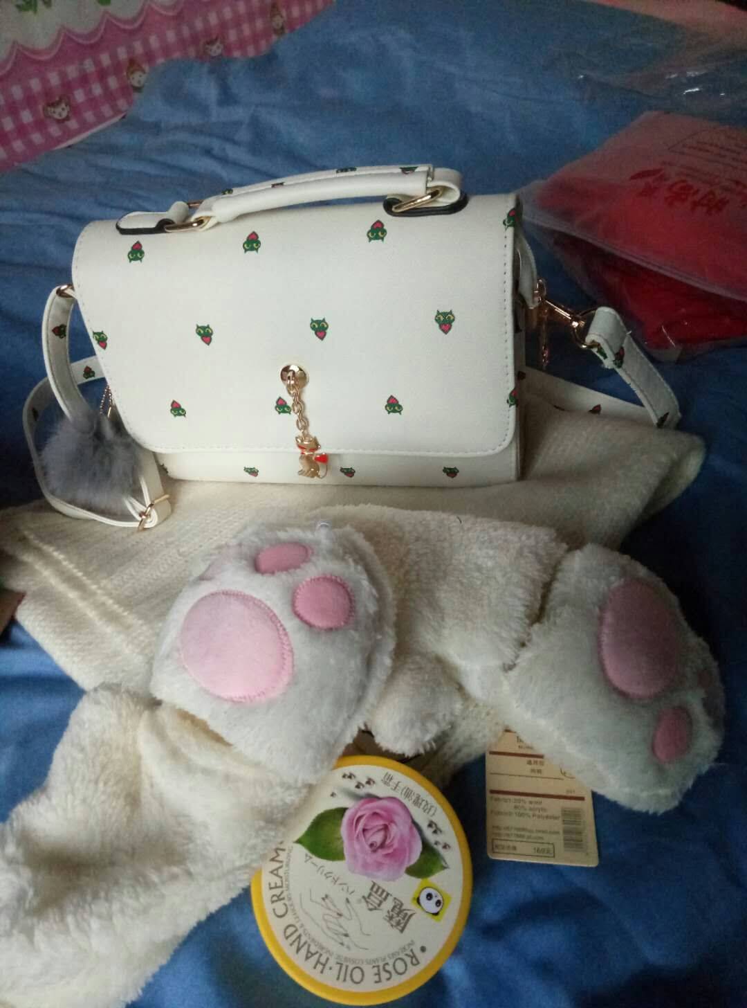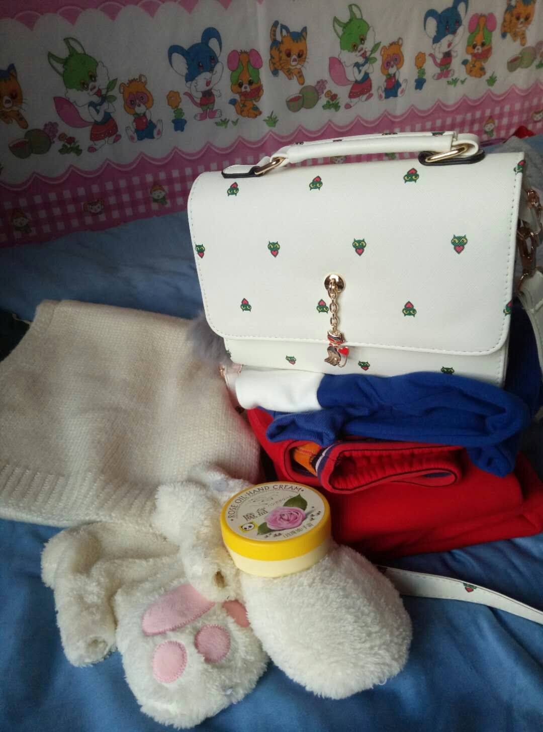 双11老公在我不知道的情况下给买了好多礼物,手套,围巾,护手霜,保暖内衣,毛衣,还有一个他说能包治百病的包包!