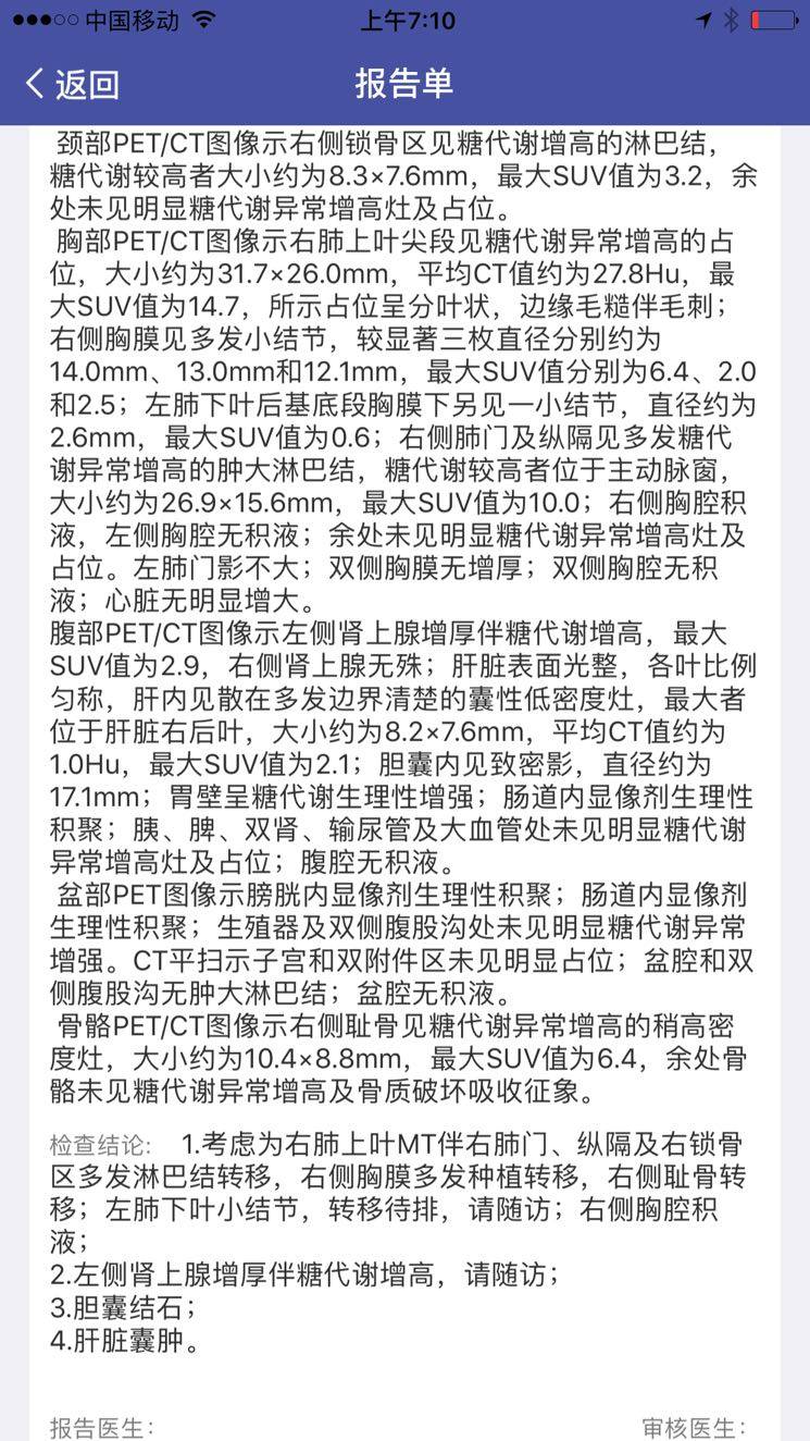 第一次复查算是有好结果吧,但转移的地方还是担心,不知易瑞沙能控制住吗?骨转不用处理吗?虽然没什么感觉。