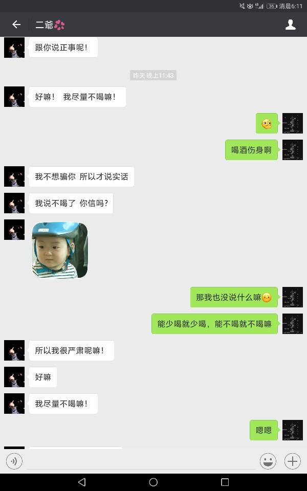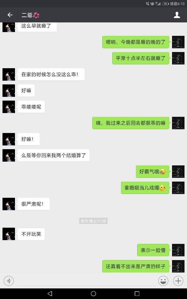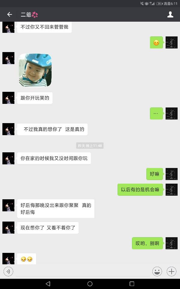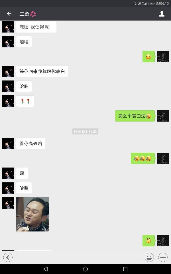 跟他认识了快一年了吧,其实联系很少的,只是偶尔他会给我发个我想你了,记得也就发过三次!依稀记得有次他给我发了一条我喜欢你,然后我回了句你是不是喝酒了的,他就说是开玩笑的,其实以下的聊天记录我还真的当真了,心里还寻思着回去考量他一下,如果合格就收了做男朋友,只不过得到的又是一句玩笑话,好吧,心里有那么一丝失望的啦!
