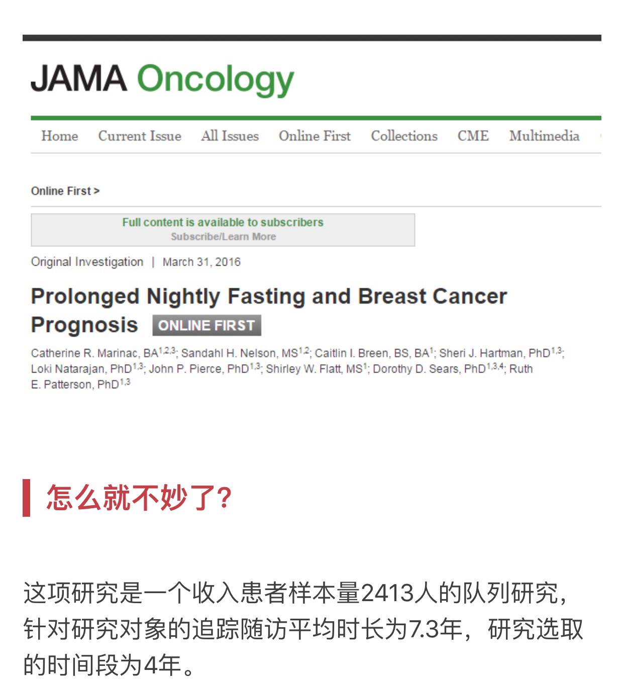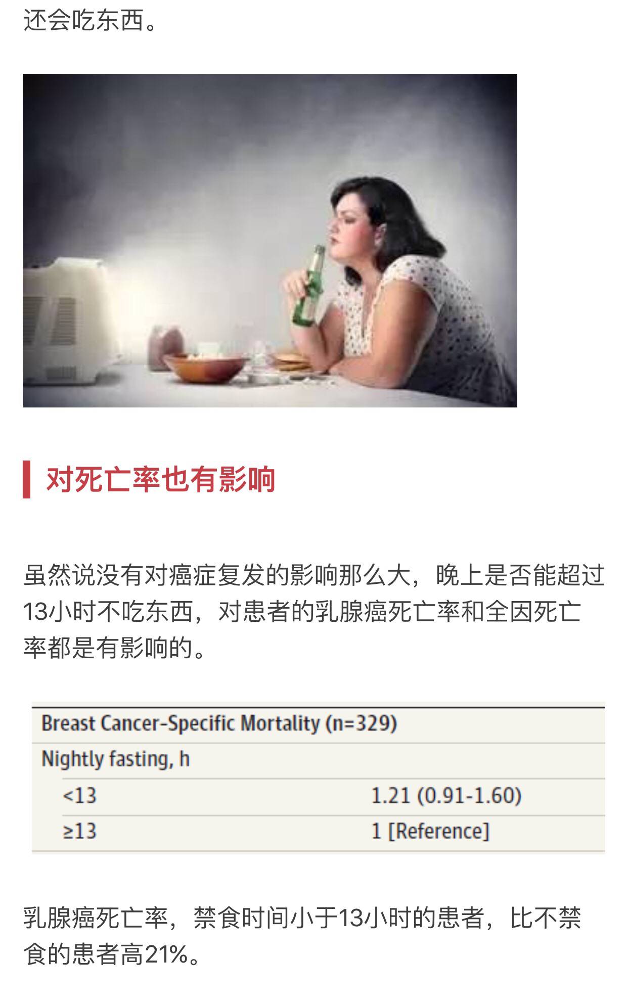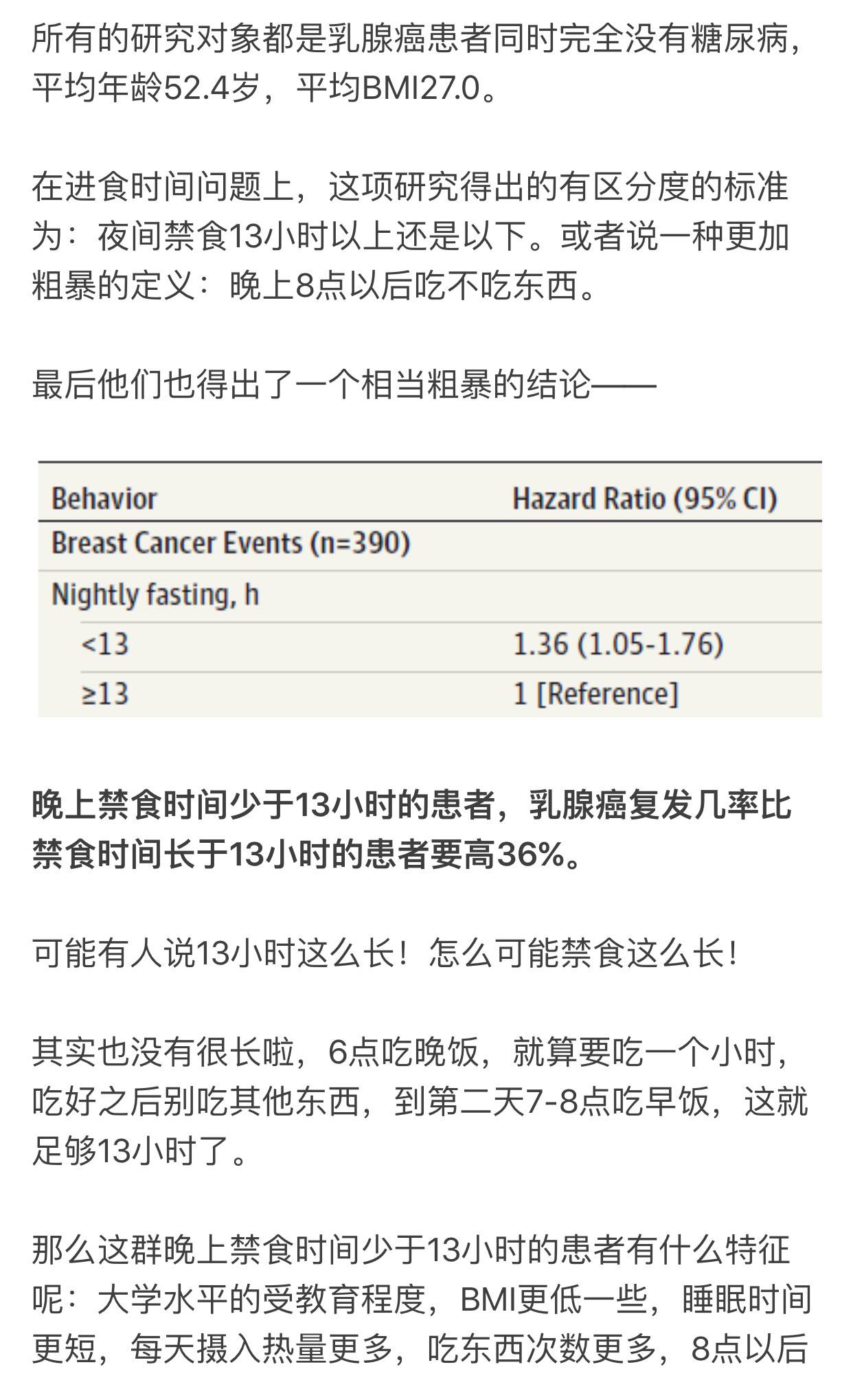 JAMA肿瘤分刊就登了这么一个相当有用的研究——晚上8点以后吃东西,对乳腺癌患者癌症复发情况可是极为不妙的。