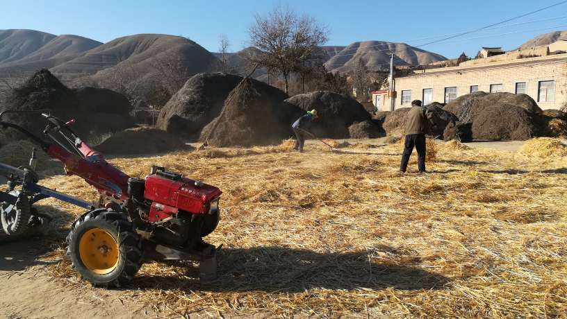 隔壁家的爷爷奶奶在碾场,凑个热闹