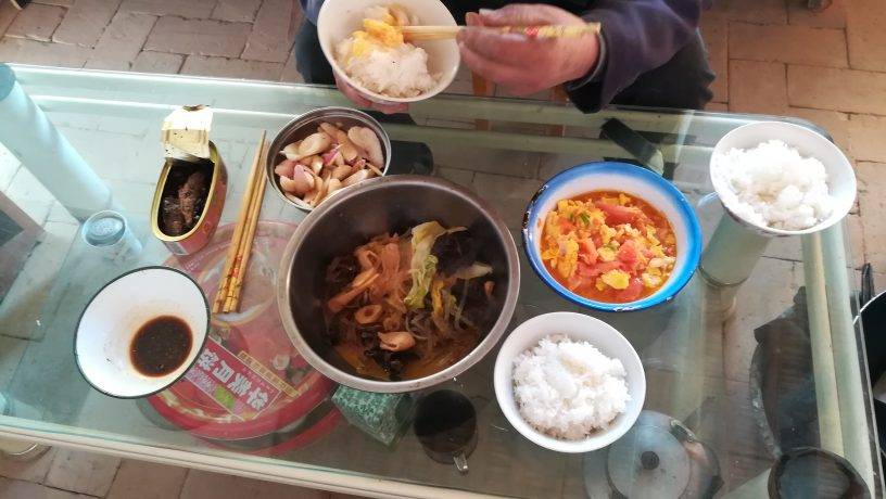 早上吃完就开始收拾洗衣服,洗完正在切菜爷爷就来了,又手忙脚乱的做了一顿饭,味道不怎么样,我让爷爷凑合吃