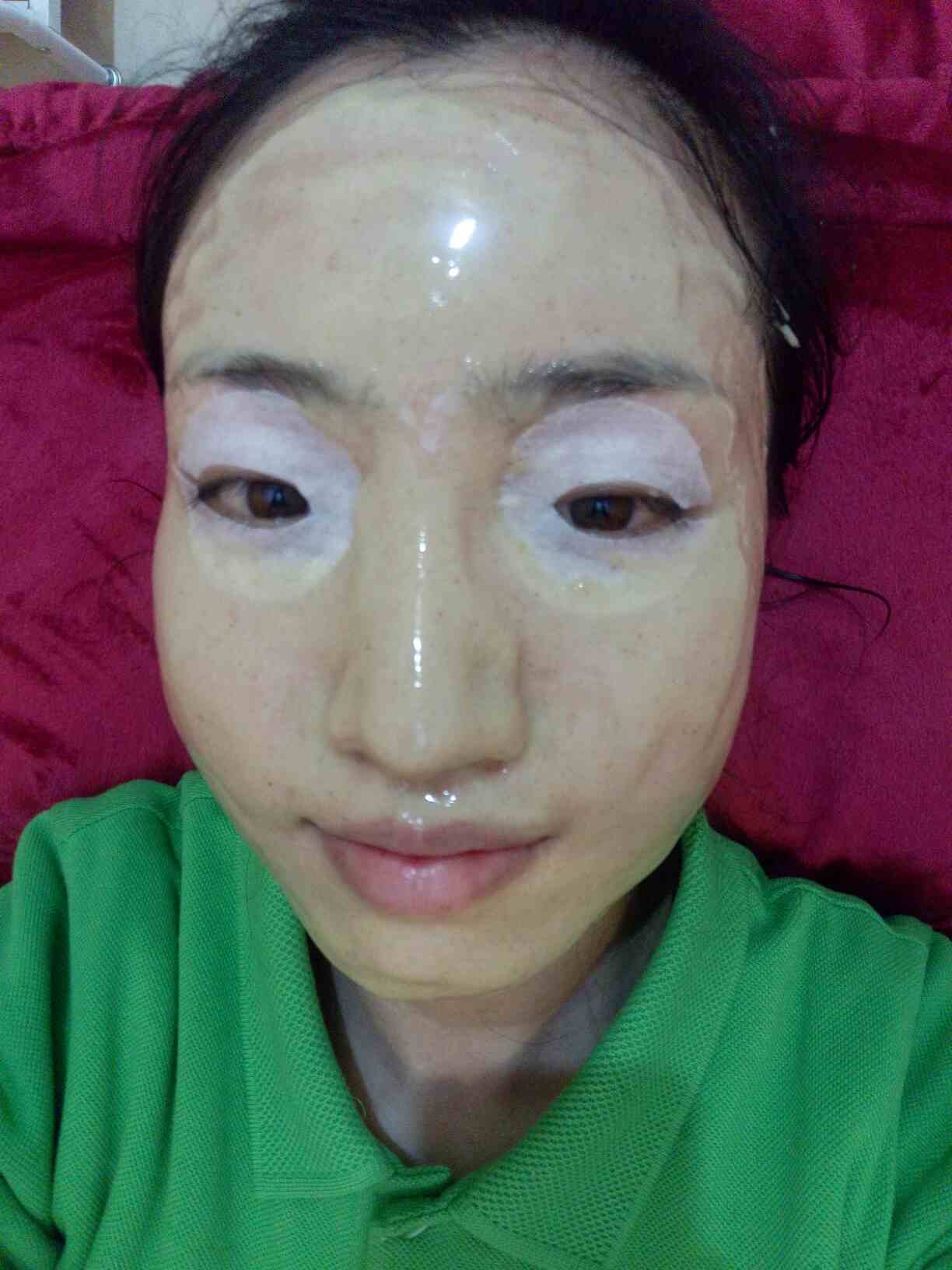 猛的看敷面膜那一张把我吓一跳。结果看素颜,超美的妹子一枚啊!