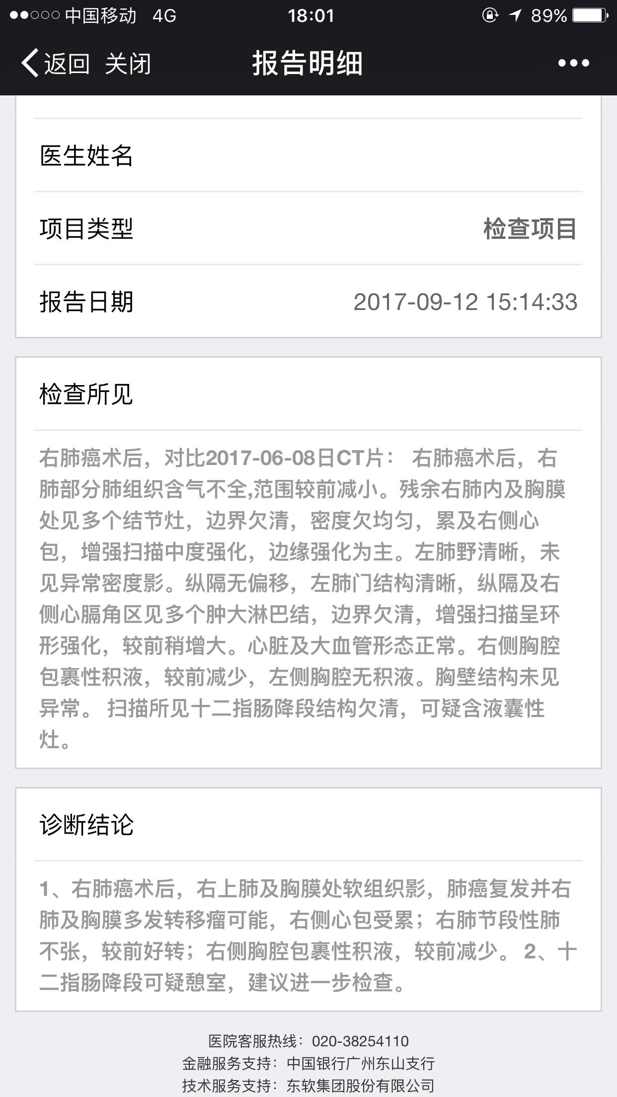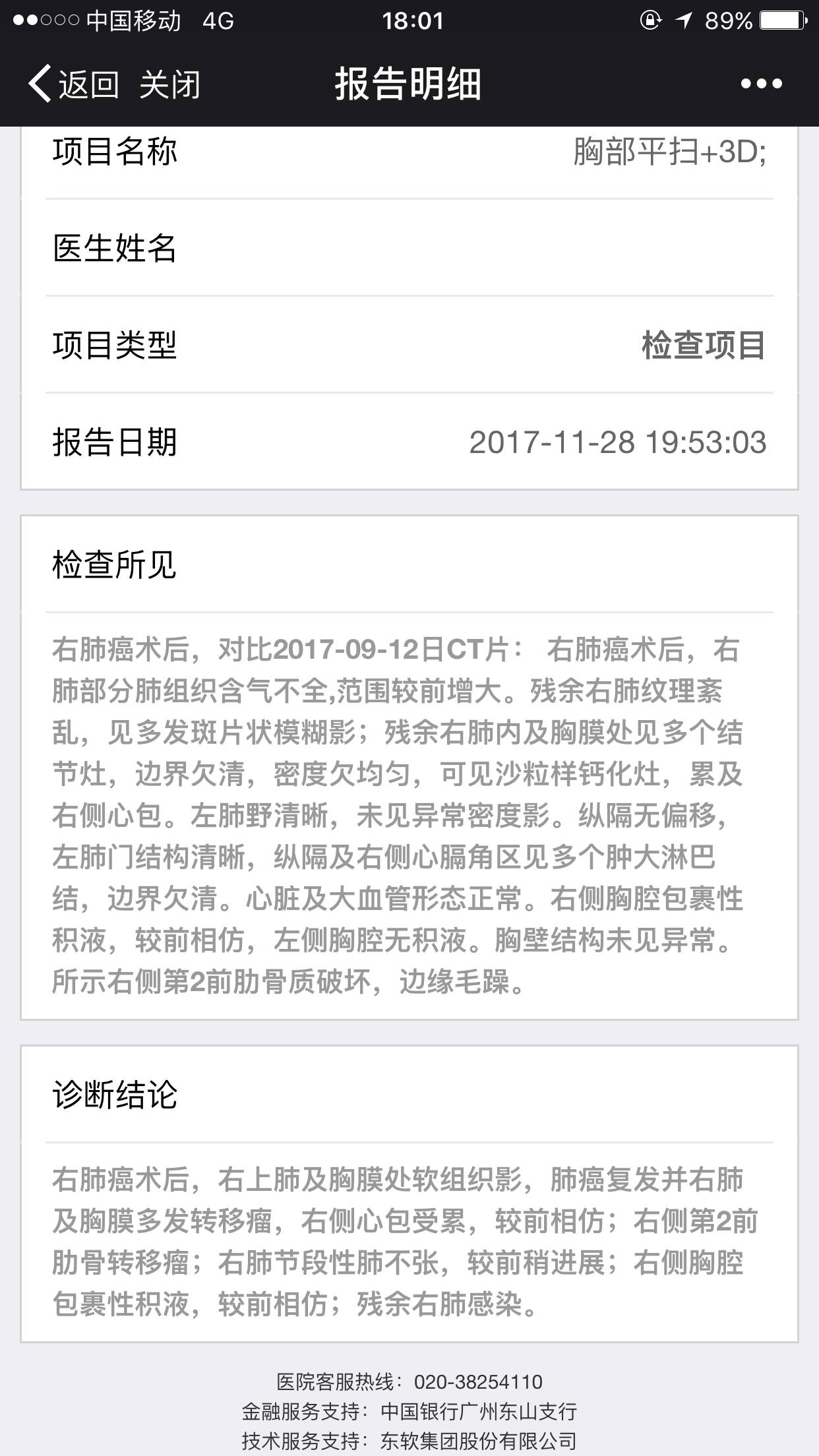 如题 手术后2年,抽过积液 吃过靶向 做过全脑放疗 这次回院想做化疗 一切指标正常 一份平扫结果打破本该吊胆的心 希望陈医生尽快帮帮忙谢谢 谢谢谢谢