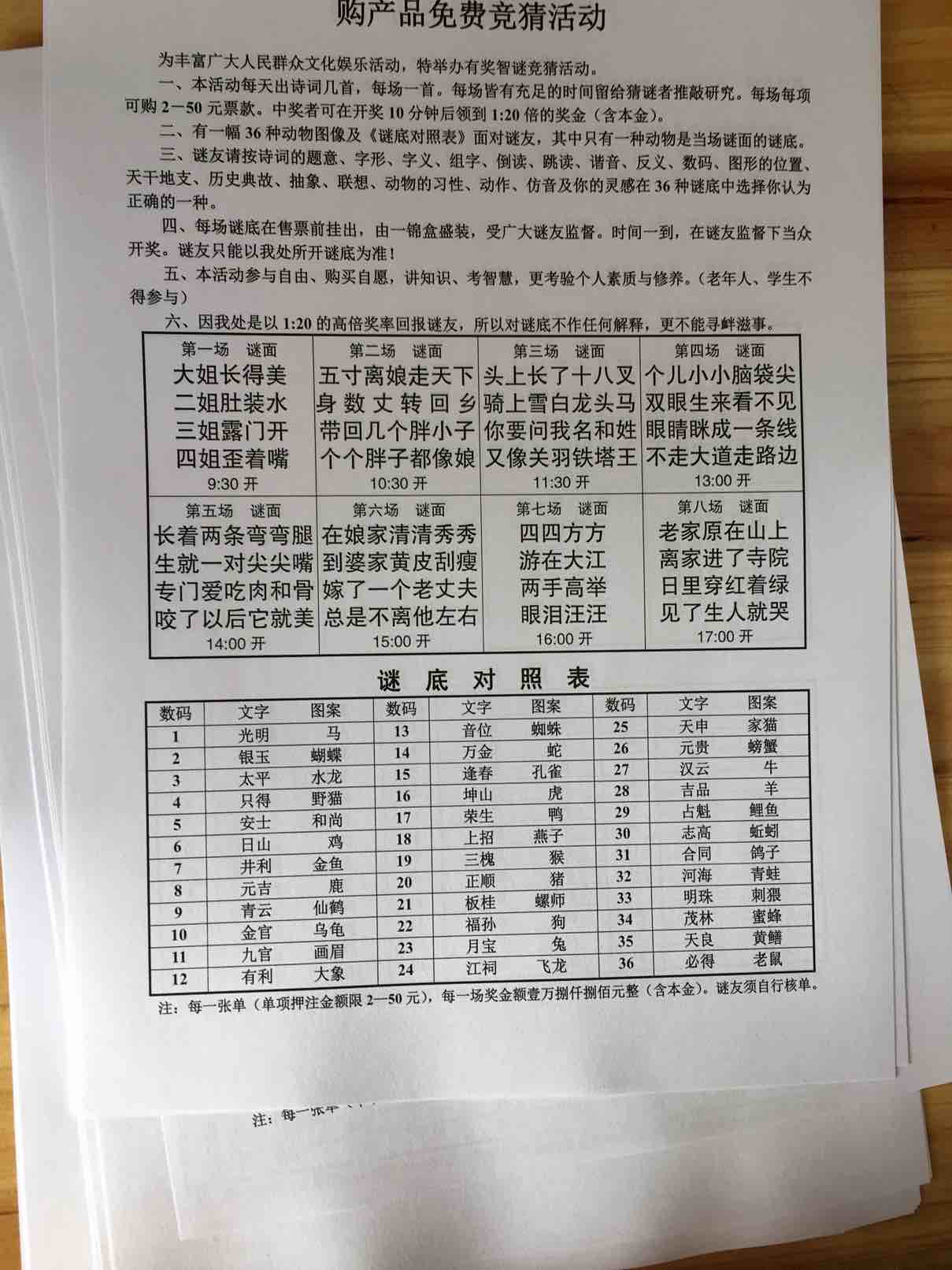 今天我透析,十二点四十,没错,今天我妈咪上班,于是我跑去看了一下,到底是什么班,结果是,很多年以前那种,出一个谜面,买动物。相当于赌钱了,就负责收钱,开单。
