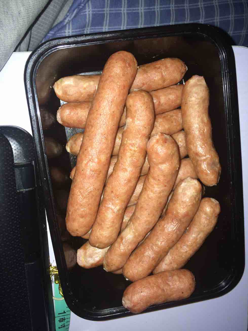 从小就爱吃香肠,外面卖的质量良莠不齐,而且还挺贵,不如自己做点。第一次做香肠,在某宝买肠衣还送灌肠器,又在“下厨房”的app上找的方法,头一次就做成了,就是做的大小不一,不过味道很好。