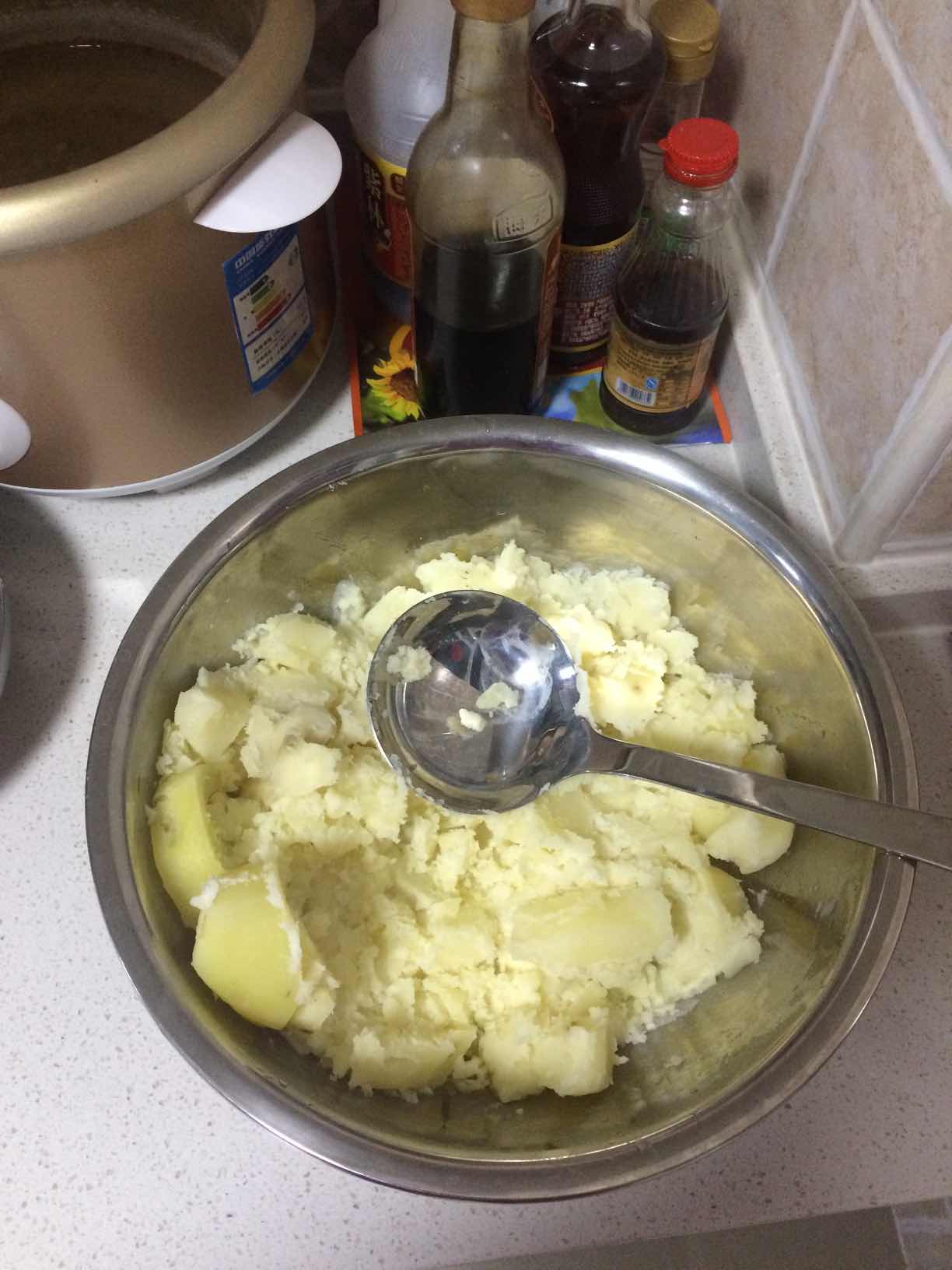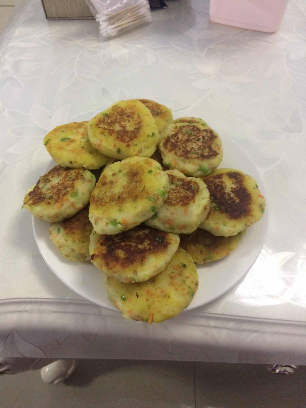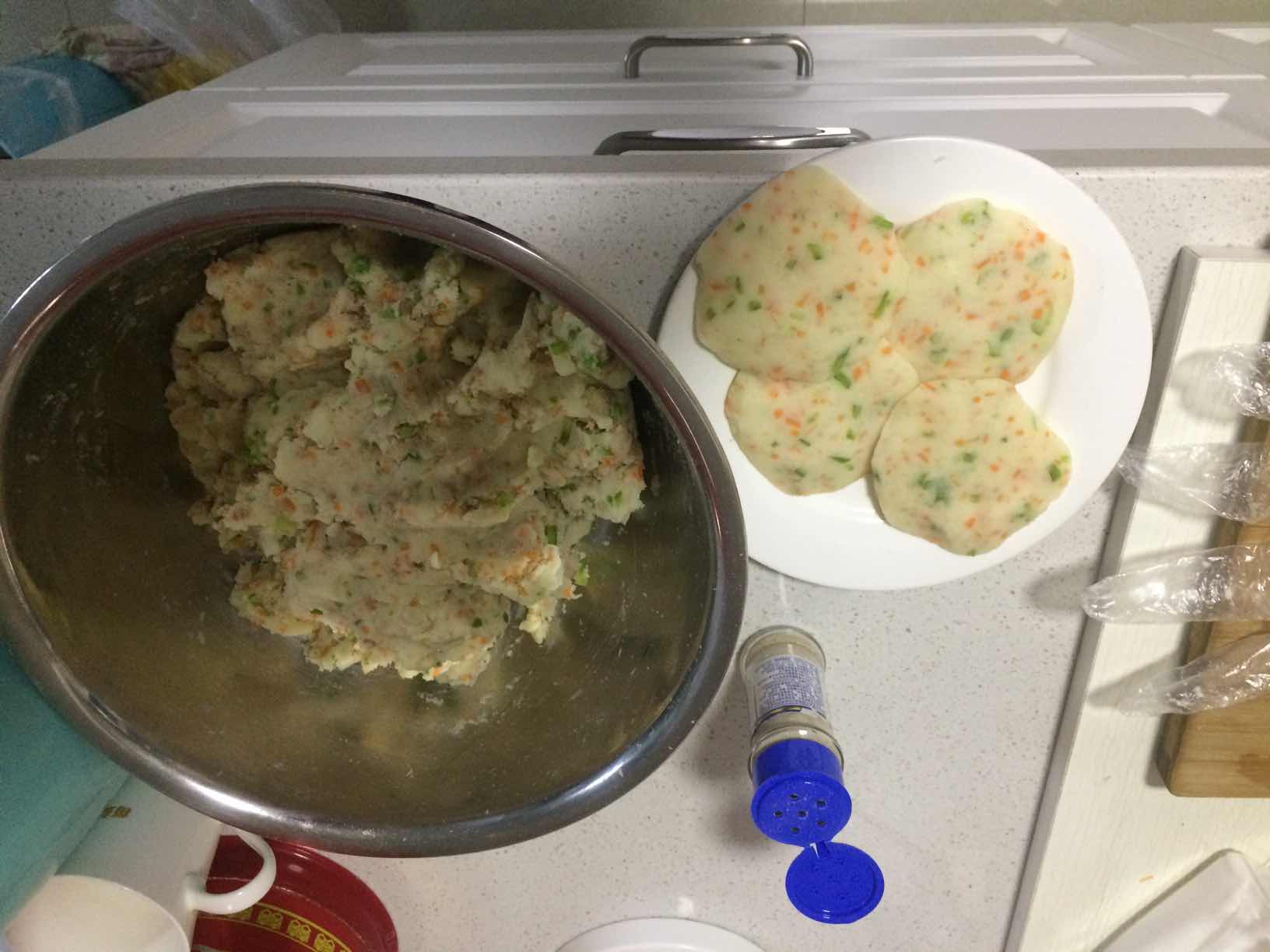 土豆泥里加的是胡萝卜和韭菜吗?还有一样是什么?用油煎吗?