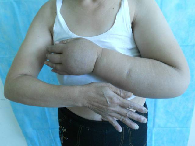 据不完全统计,大约20-30%乳腺癌根治术后的患者会发生上肢淋巴水肿。因为手术切除了腋窝淋巴结,放射治疗进一步破坏了淋巴管,淋巴回流受阻而引发水肿。淋巴水肿发生的时间多变,有的术后1、2年即发生,有的10年后才出现。大多数患者在手术后立即出现手臂的肿胀,但这并不是淋巴水肿,很快肿胀就会消退。此后如出现持续不退的水肿应引起警惕,尽早就医。