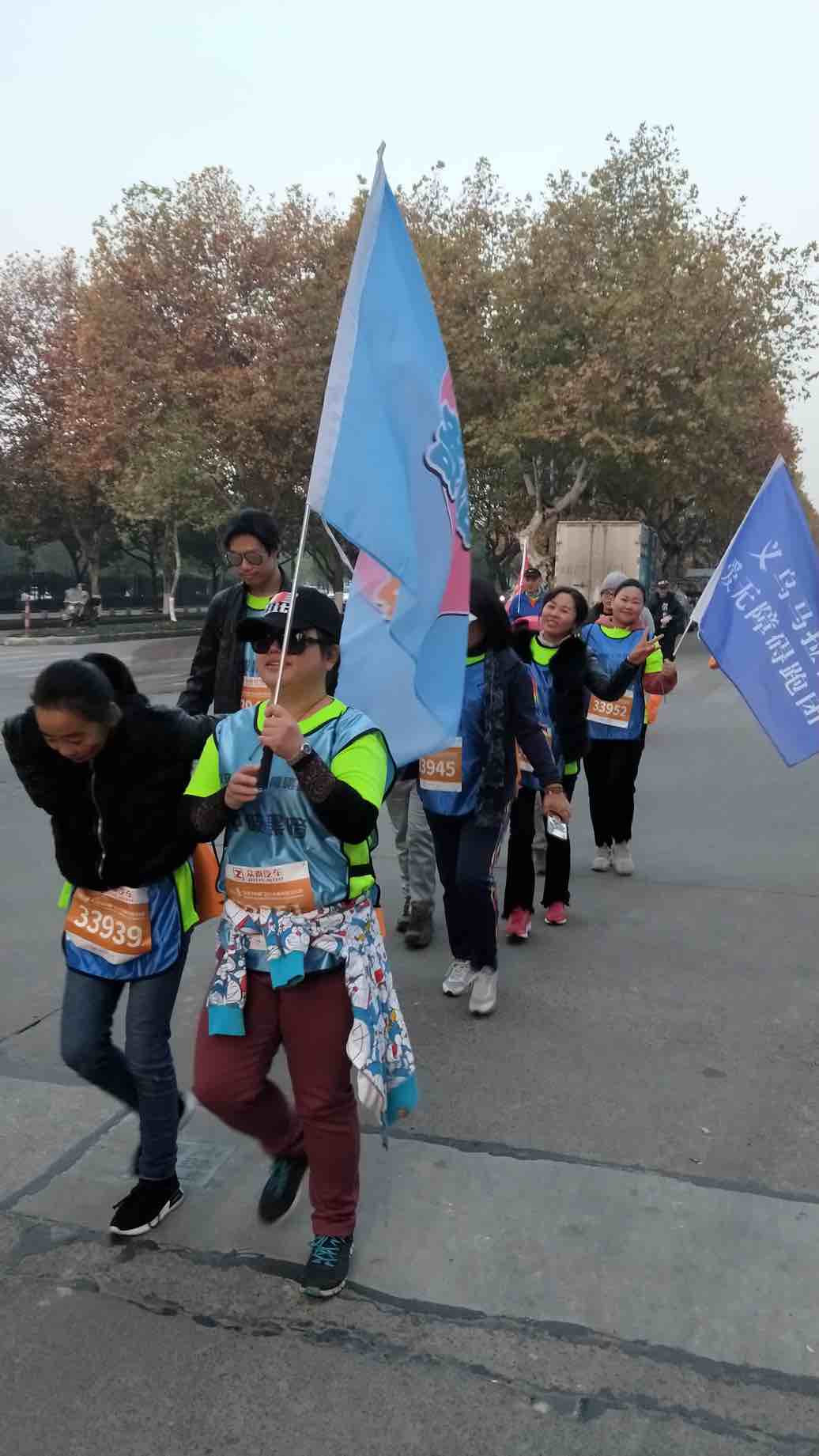 早晨五点开始,起床,安排一切事情。列队起跑。。因为我的眼睛问题,今天我也是作为一名视障人士参加,由小颂颂为我领跑。。。