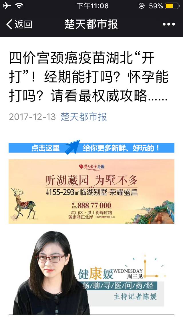 四价宫颈癌疫苗湖北“开打”!具体大家可以搜索。