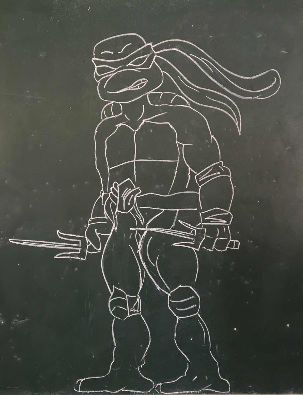 教学生们画忍者神龟,孩子们说太难了。看着他们迟迟不肯起笔,我鼓励他们:人生要敢于挑战,才能战胜自己,超越自己。似乎我也是在对自己说,虽然画的不是很好,但会不断努力,不断尝试!