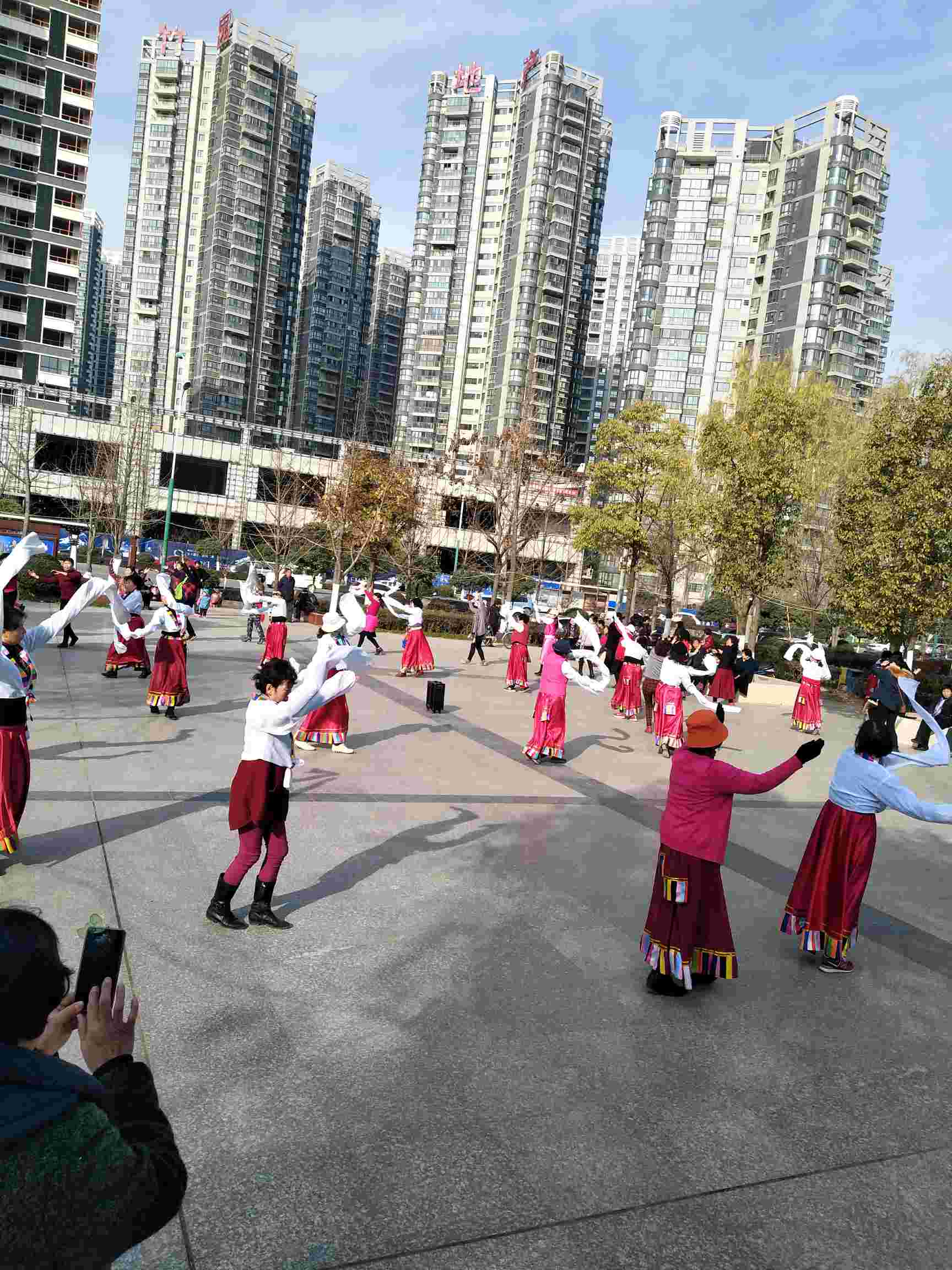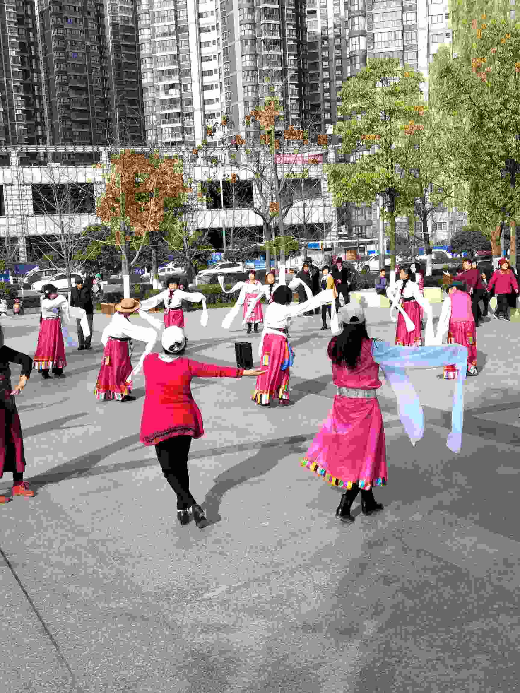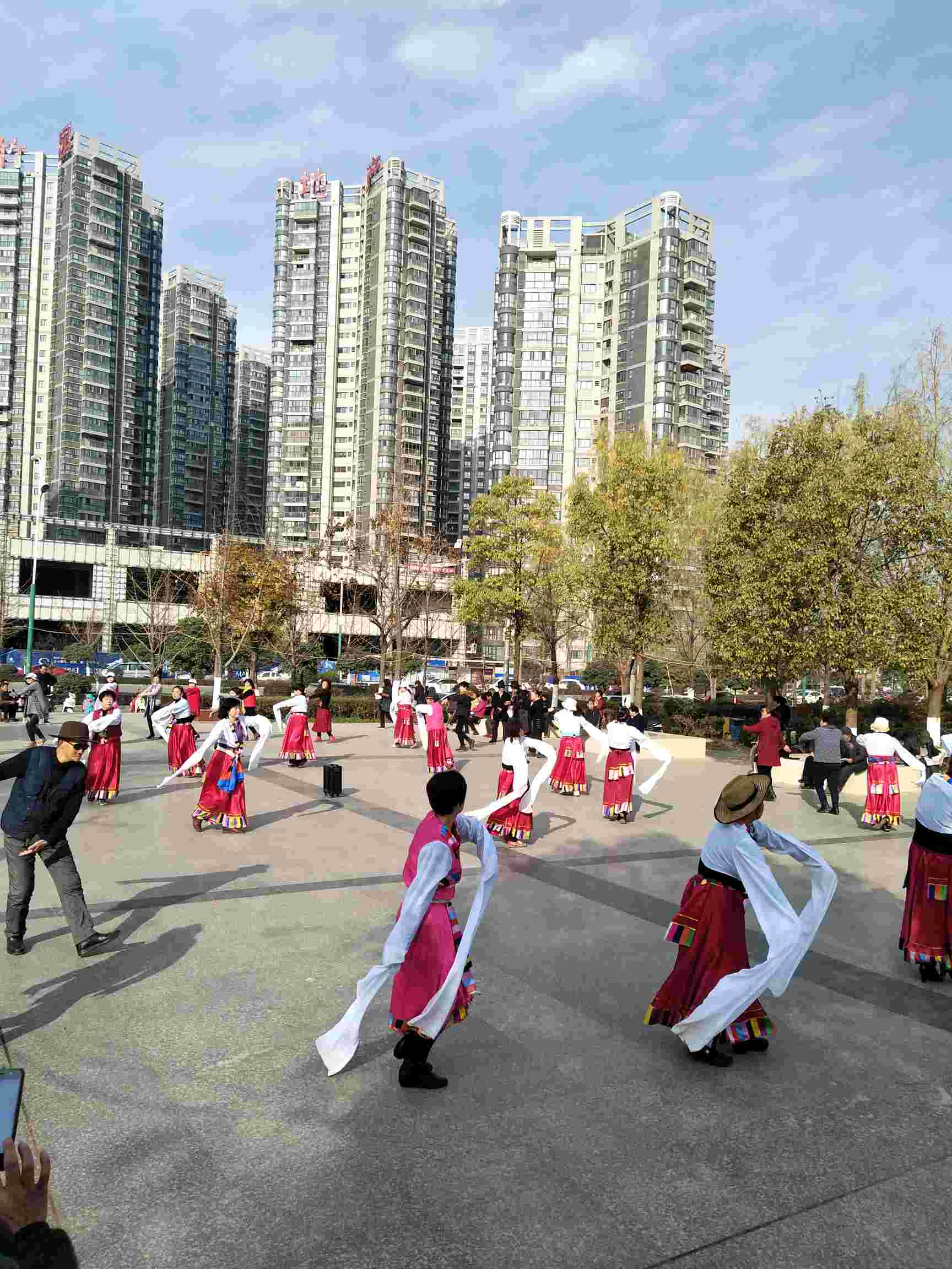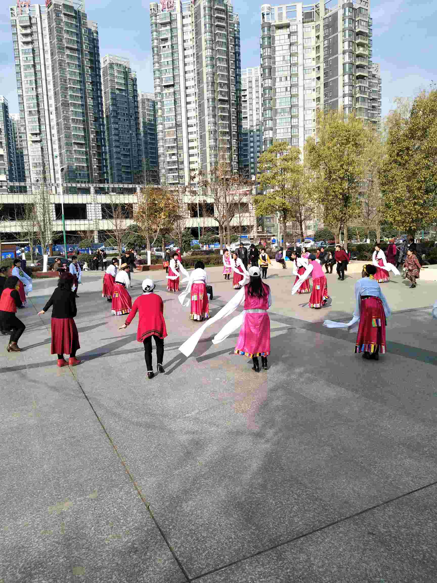 今天早上吃过饭喝了药就疲乏,上午就在家睡觉了,中午饭是婆婆做的。下午阳光明媚,老公出差回来了,开车送儿子上补习班然后送我和老爸到汉江边玩,我主要是去参与一下广场舞活动,大妈们跳的是藏族舞。每天中午1点30开始,3点结束。我跟着跳了一会就感觉好热脱了羽绒服又跳,老爸是给我拿衣服端水的😀️。今天第一天参加活动,坚持不了了就下来休息一会喝点水又跳,比散步累多了。不过听听音乐跳跳舞心情也比较好,我是的好好锻炼一下减减水牛背,激素脸和大肚腩了,要不每次一照镜子就会自卑不想出门,也想通过锻炼补补钙减少骨质疏松的不断扩大。