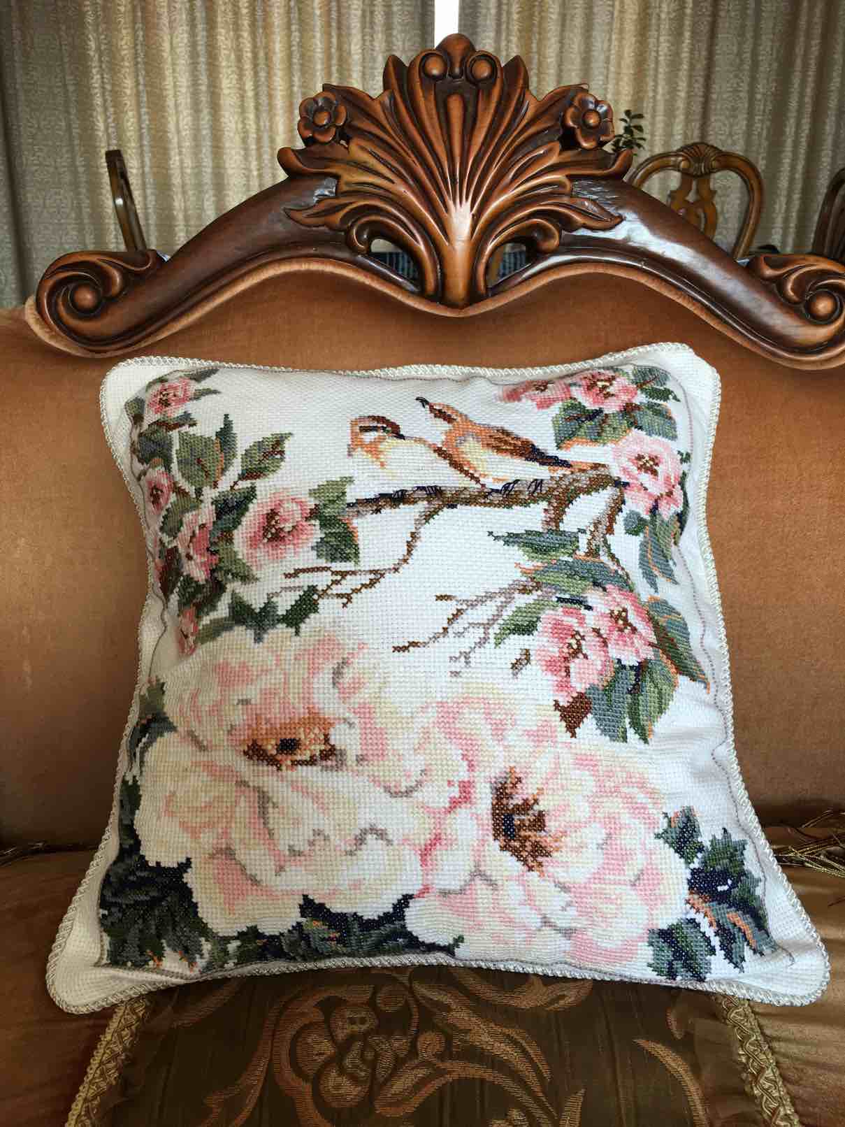 今天终于绣完了这个牡丹十字绣抱枕,一是因为生病,二是眼神也不济了,一年多了才绣完,还有好几个半拉子工程等着,不怕慢就怕站,有兴趣时慢慢玩,出来成品还是蛮有成就感的!