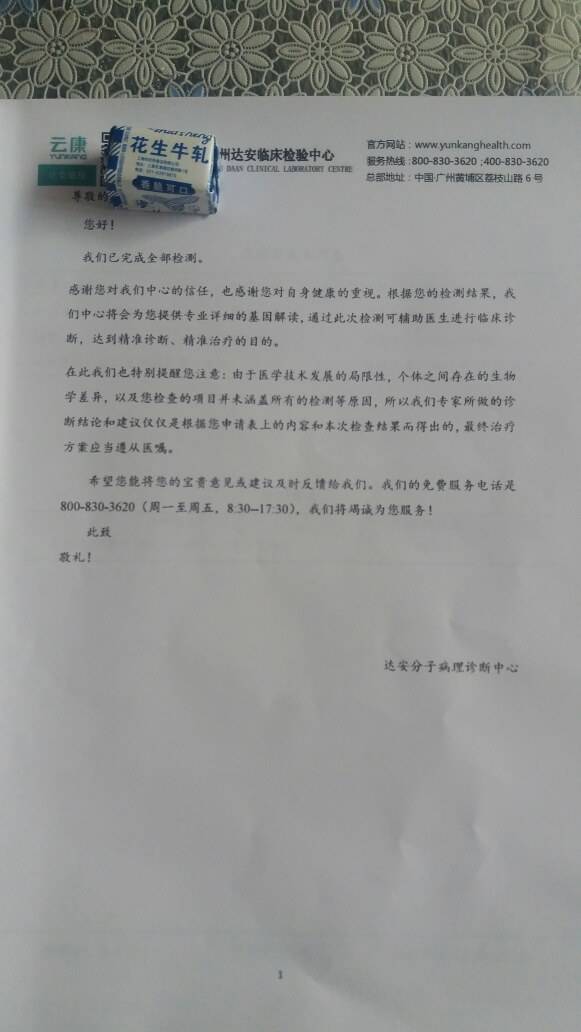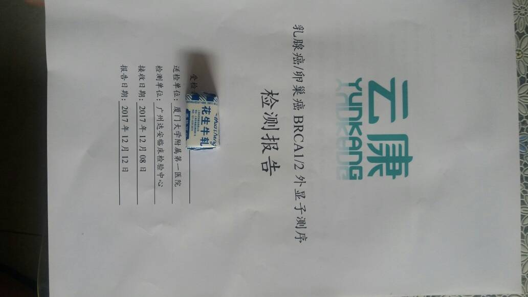 活动【粉红十月/让爱珍藏】奖品——《乳腺癌/卵巢癌BRCA1/2外显子测序检测报告》收到了。