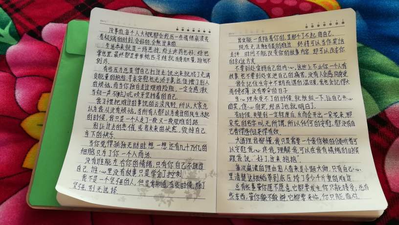 从一个多月前爸爸回来那次开始,我没有吼他没有发脾气了,他说话我也接,说过年猪杀了少吃点肉,好不容易把血脂降下来了😊今天他去镇上还了贷款的利息,顺便把我的医药费报了😉晚上爸爸跟妈妈一起做饭,吵吵闹闹😘妈妈说给姐姐买嫁妆的时候看到围裙好可爱,给我买来让我学着做饭😄煮了板栗,放了点盐跟糖,好吃😍吃完饭跟妈妈溜达了一圈😊下午写了两页字✌