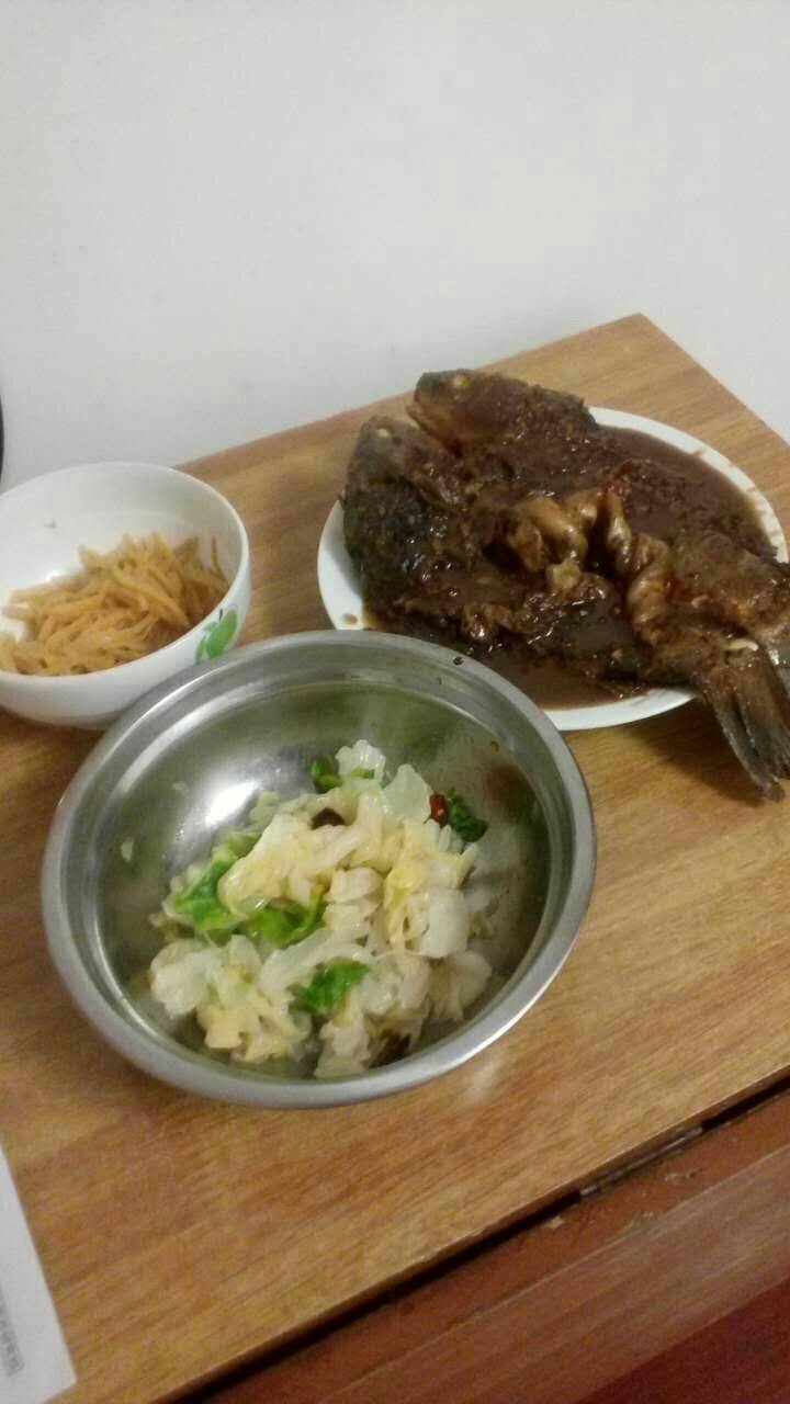 刚刚看见有活动了,今天我来晒晒昨天晚餐,儿子中午买二条活鲫鱼,凉拌圆白菜,素炒土豆辣子,自从生病以后,敢觉自己真的成吃货了,儿子告诉我,您现在的任务就是吃好,睡好,开开心心把病养好,这样我才能放心去努力挣钱,把咱这个家养好,听了儿子的话顿时大悟,我养了一个有担当的好儿子,我努力,我加油,一定要儿子放心。