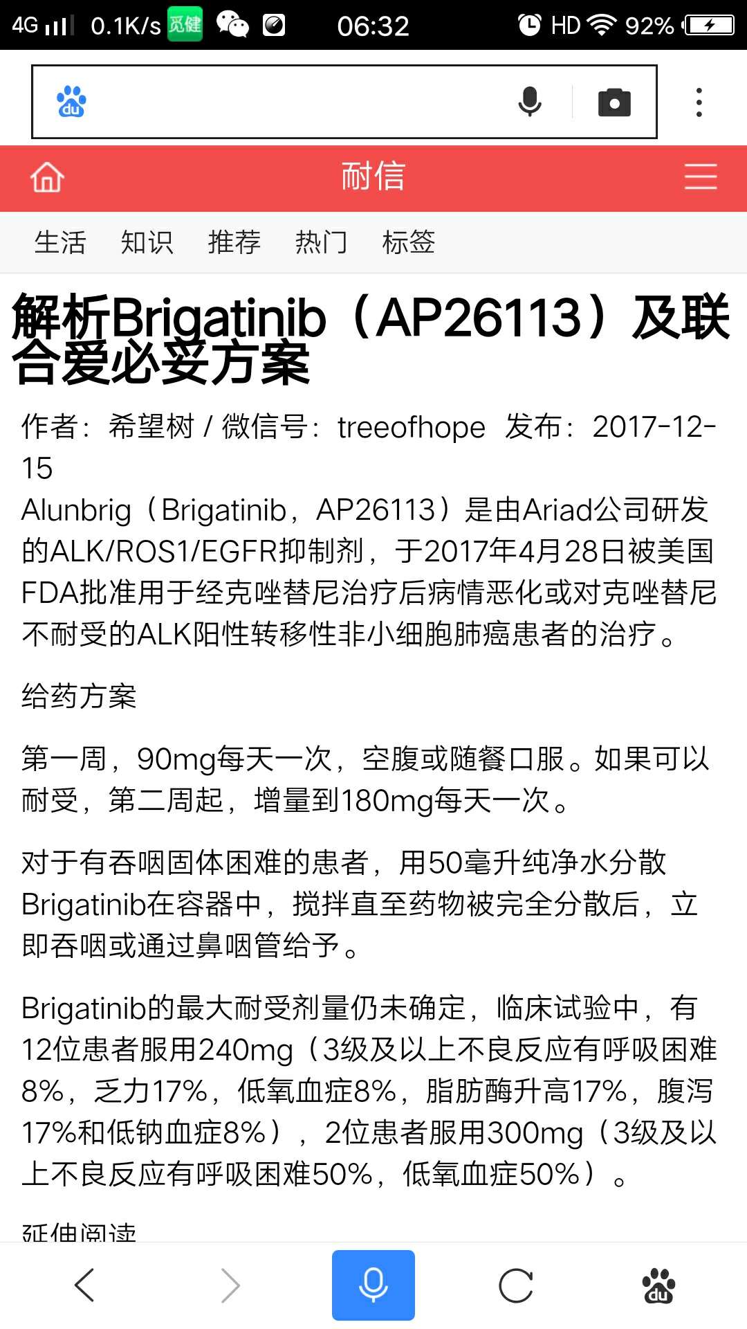 (AP26113)于2017年4月28日被美国FDA批准用于经克唑替尼治疗后病情恶化或对克唑替尼不耐受的ALK阳性转移性非小细胞肺癌患者的治疗。