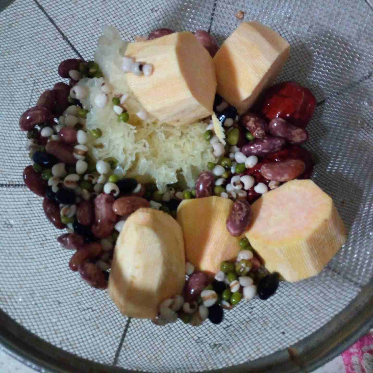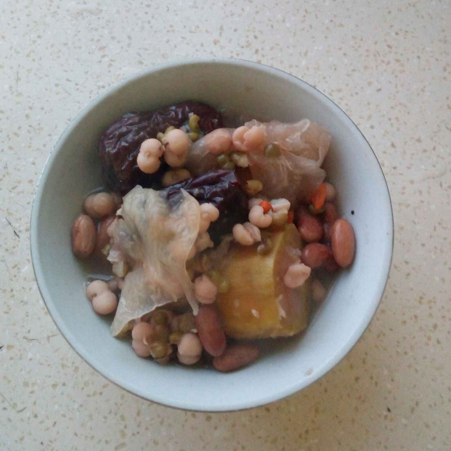 晨起一杯温水,稍后空腹一个苹果,每天如此。七点吃早饭,炒个蔬菜。今天的早餐食料:银耳,红枣,枸杞,黑豆,芸豆,薏仁,绿豆,山芋,鸡头米等,以前还有红豆(刚吃完,加了绿豆),小米,玉米渣,能放的都会放点,也不知道这么多食材合不合。希望姐妹们提出高见!