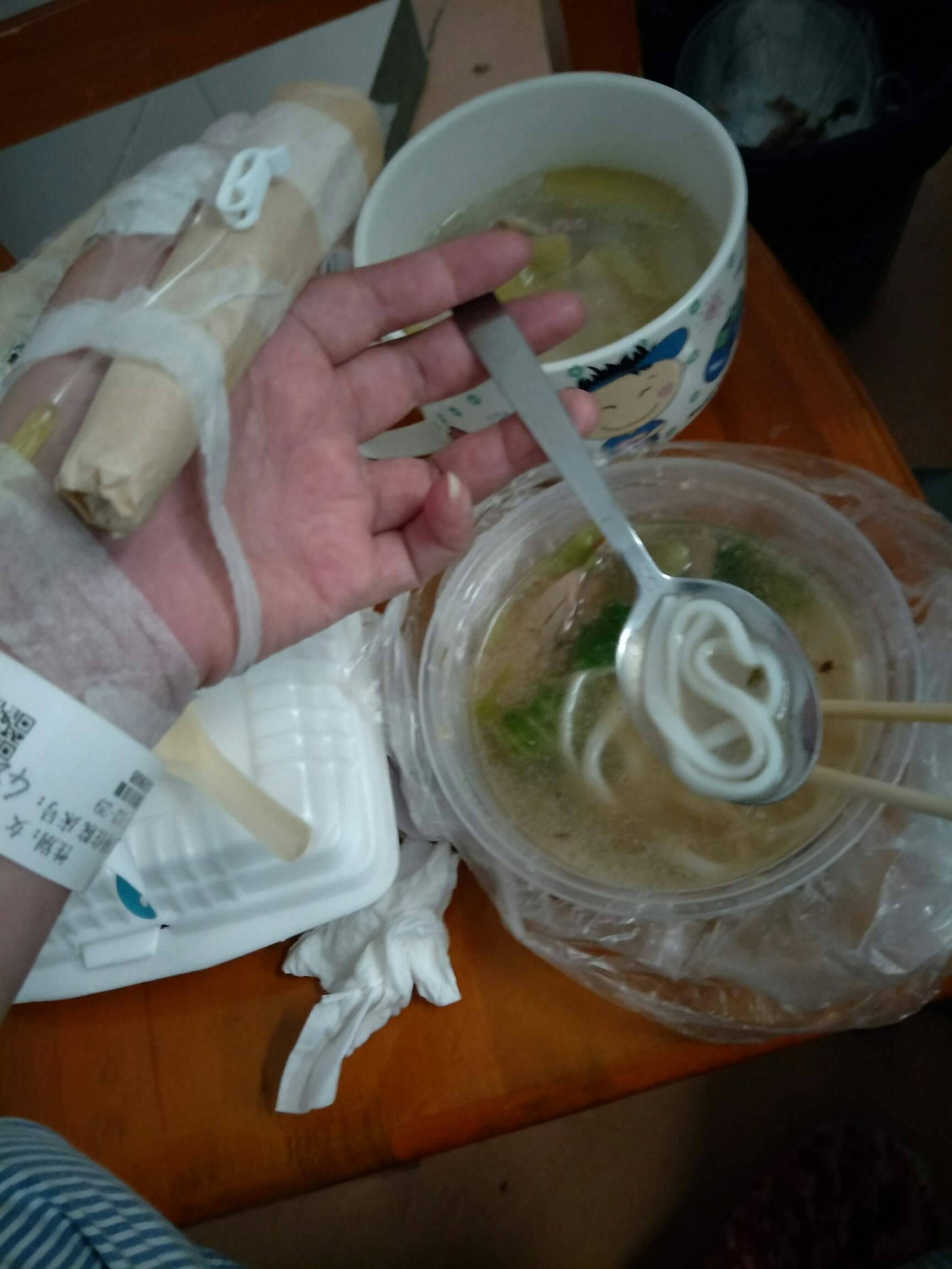 酸菜特别好吃,不酸不怕又那个味道,刚好合适,,很开胃,我妈都吃了一大半😄😄,我吃了一点白粥,碗里的汤,节瓜我吃完,排骨没吃,叫我低嘌呤饮食喔😂😂什么节奏勒,再减肥??我入院称只有130斤而已哦!看着自己一直瘦了下来,我很开心,但我希望瘦了是健康的💪💪!