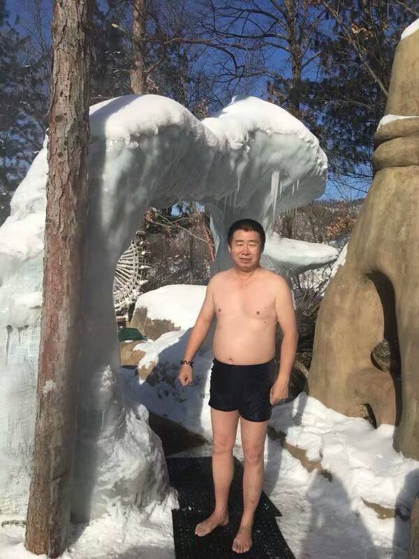 陈波医生冰天雪地泡温泉真惬意,不像厦门都没冬天的,泡不出温泉的味道