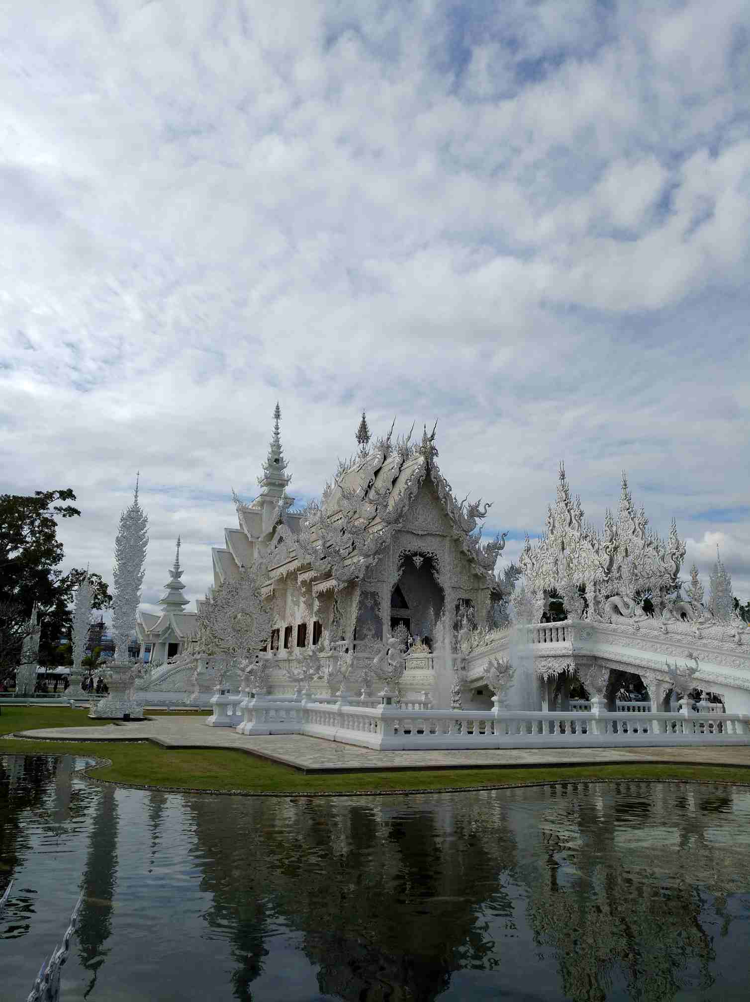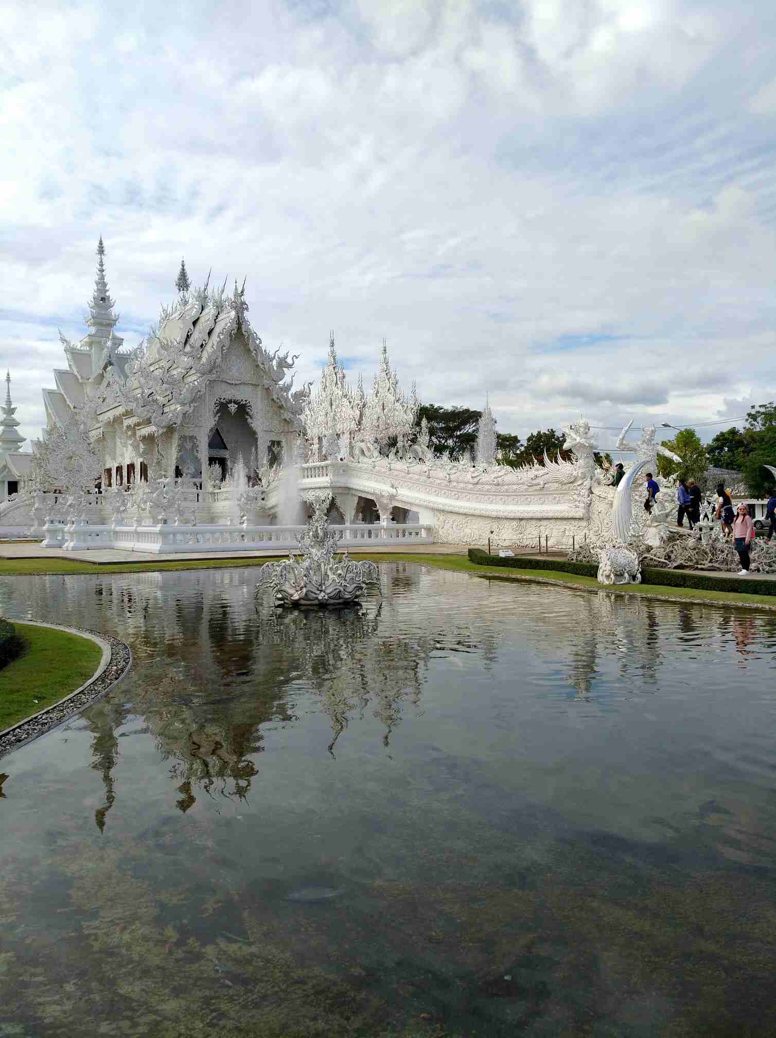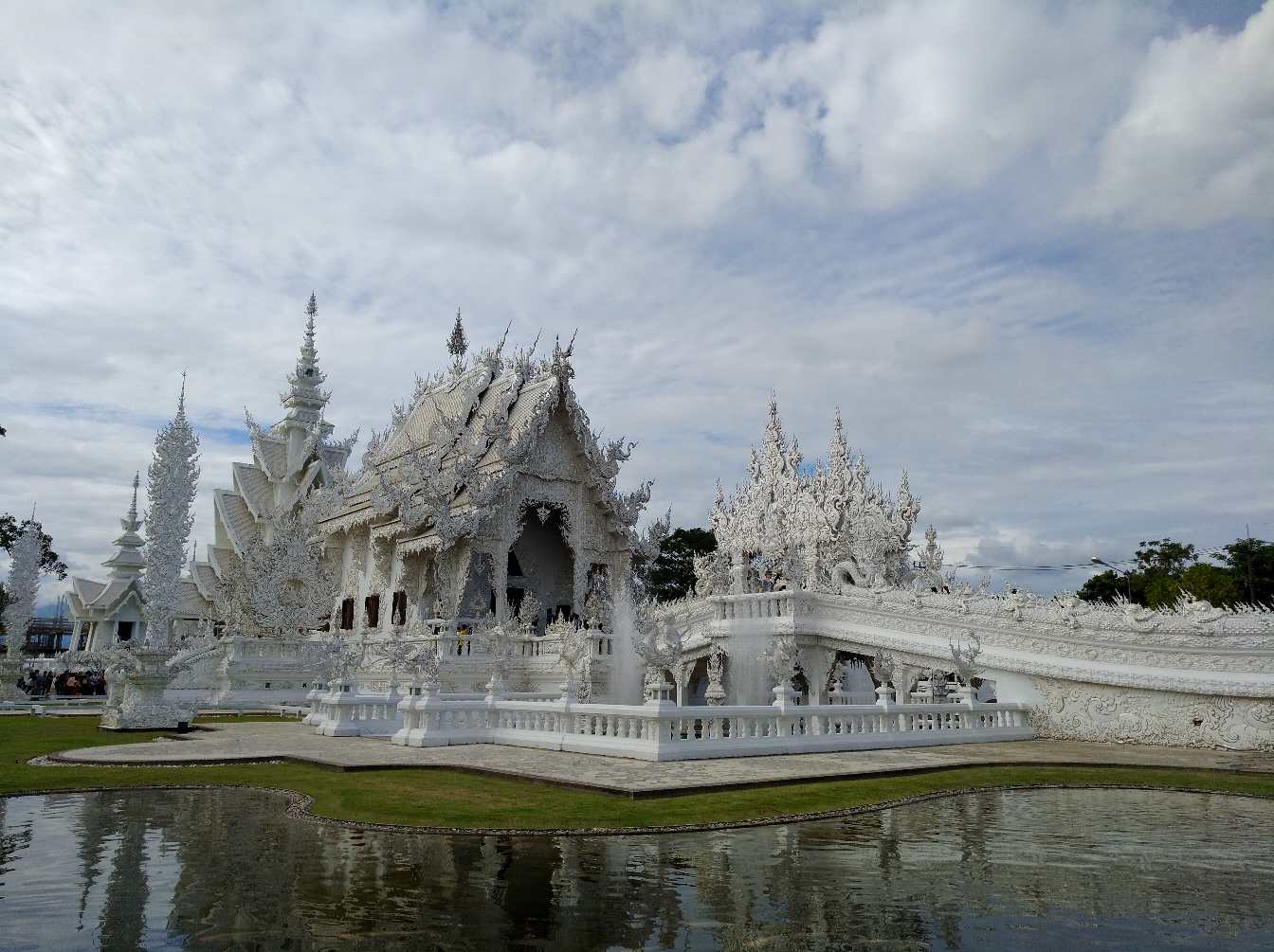 这次清迈之旅, 最期待的就是白庙。白庙通体白色,雕刻精美,非常漂亮。建筑群的周围被环形的池塘包围,白庙就像是水中的一座宫殿,宛若仙境,美伦美焕,让人叹为观止。最后一张照片是传说中的黄金厕所。