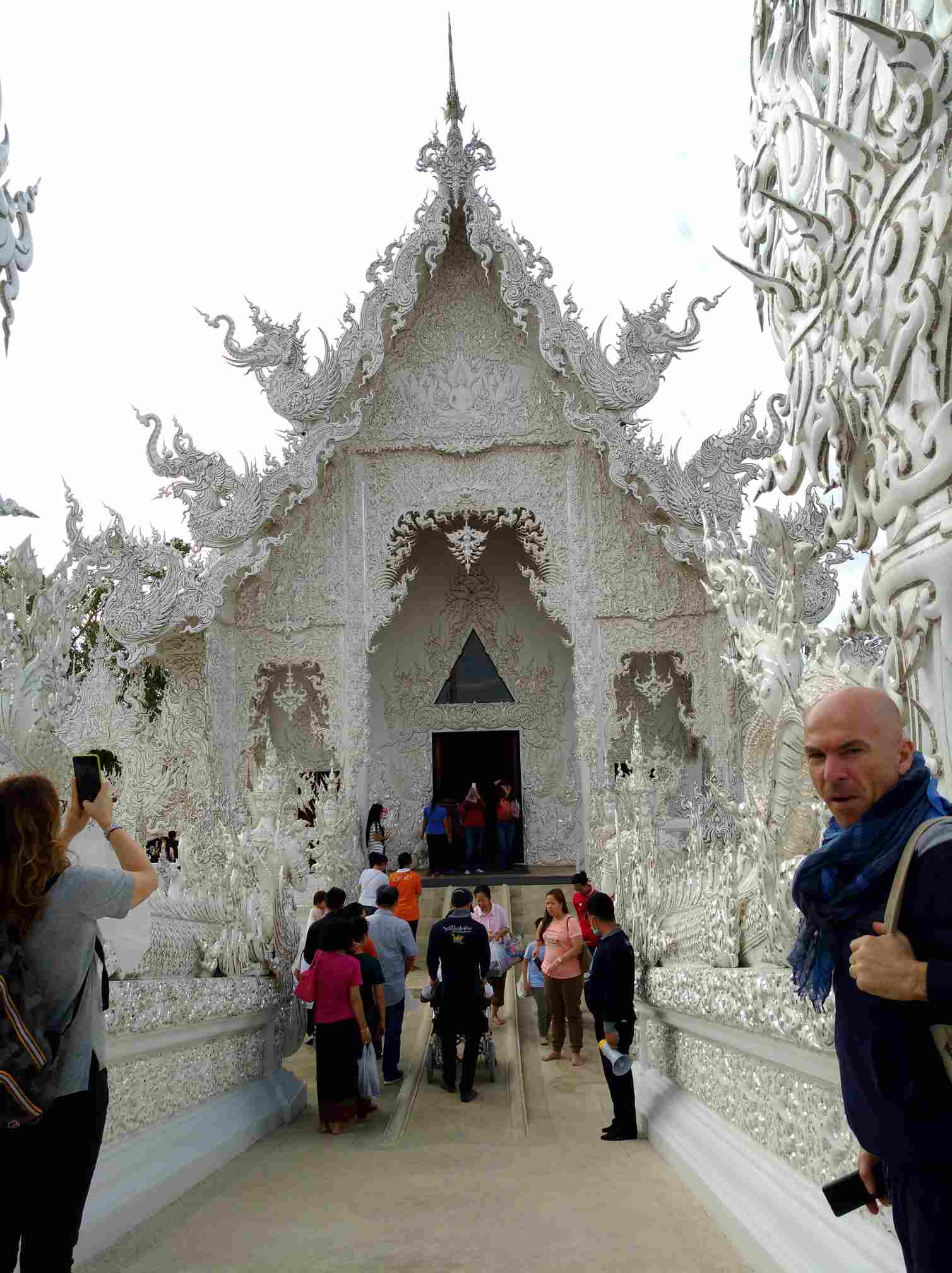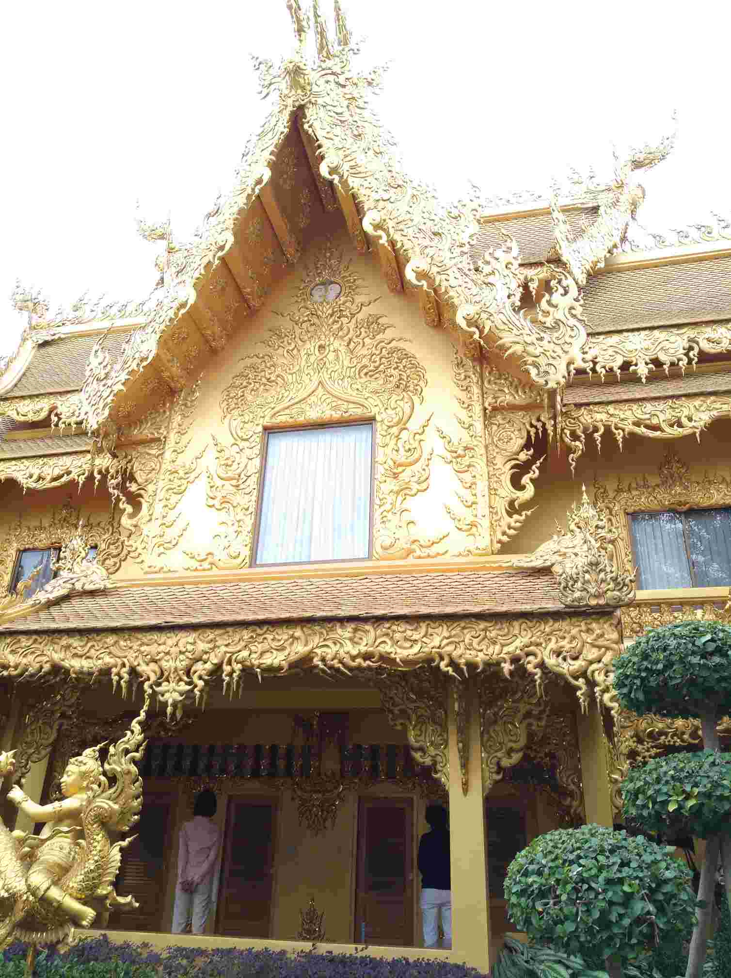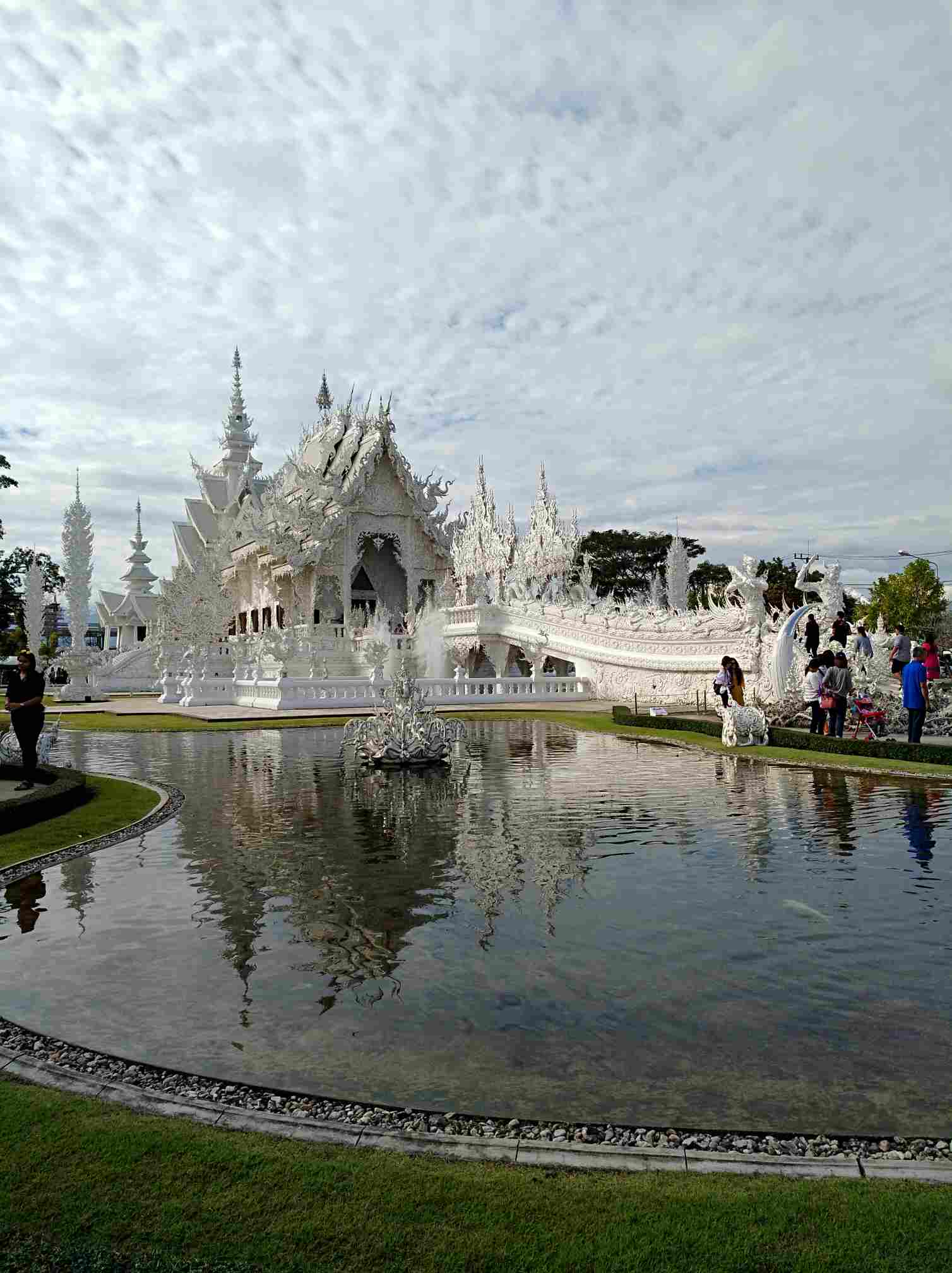 这次清迈之旅, 最期待的就是白庙。白庙通体白色,雕刻精美,非常漂亮。建筑群的周围被环形的池塘包围,白庙就像是水中的一座宫殿,宛若仙境,美伦美焕,让人叹为观止。最后一张照片是传说中的黄金厕所。