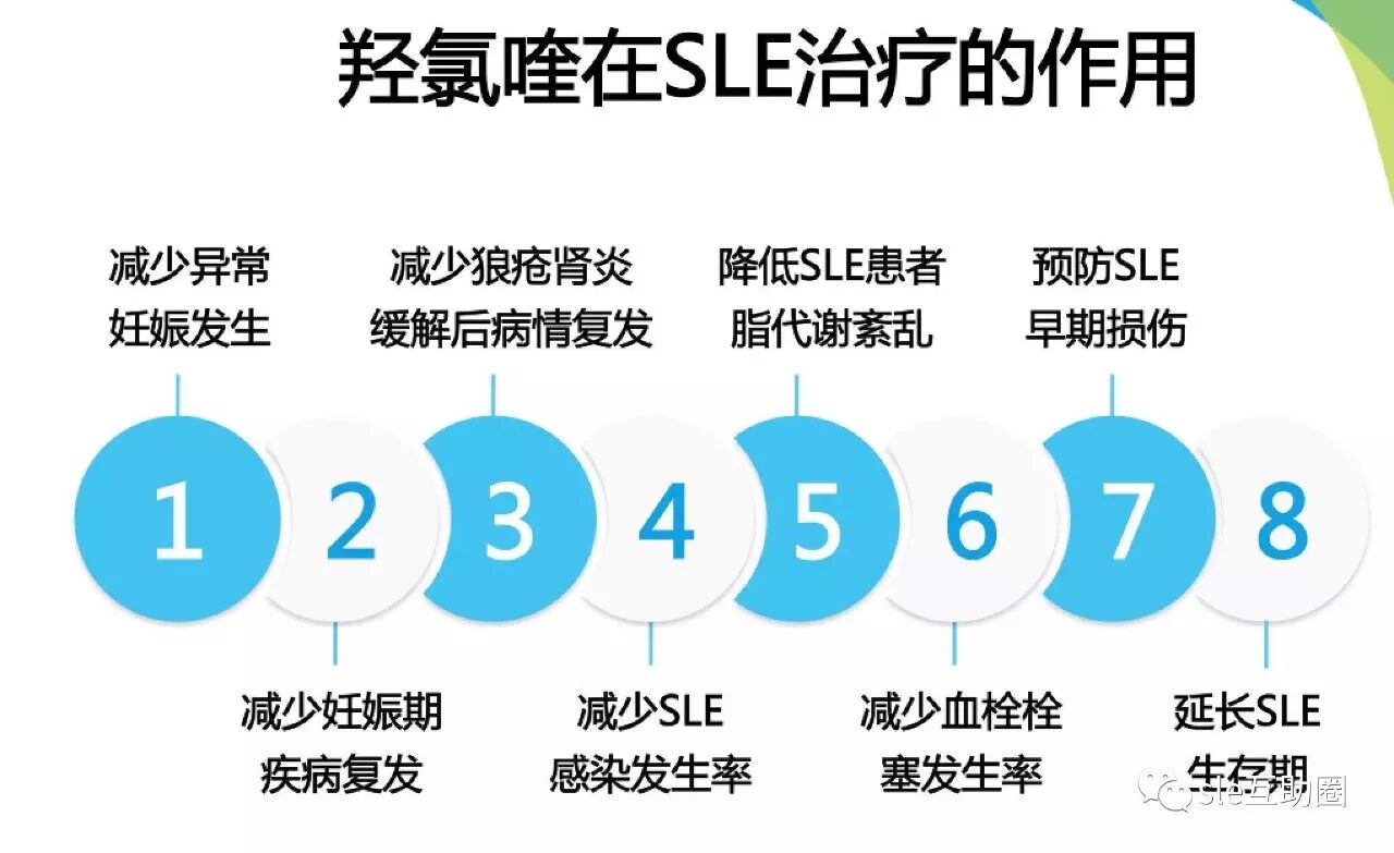 部分SLE 患者虽然每天都在服用大把的药物,但不太了解为什么红斑狼疮需要抗疟治疗。抗疟药是治疗SLE 的一种常用药物,具有抗炎、免疫抑制、抗光过敏和稳定核蛋白的作用,主要包括氯喹和羟基氯喹,然而抗疟药往往起效慢,需长期服药。所以,能够明确地告诉大家,未来的双氢青蒿素的作用类似于现在SLE基础用药羟氯喹(纷乐)的效果,但是由于长期服用纷乐后个体化差异会产生相应的副作用,故期待着双氢青蒿素在效果上超越其他抗疟药物,在副作用上有所降低。