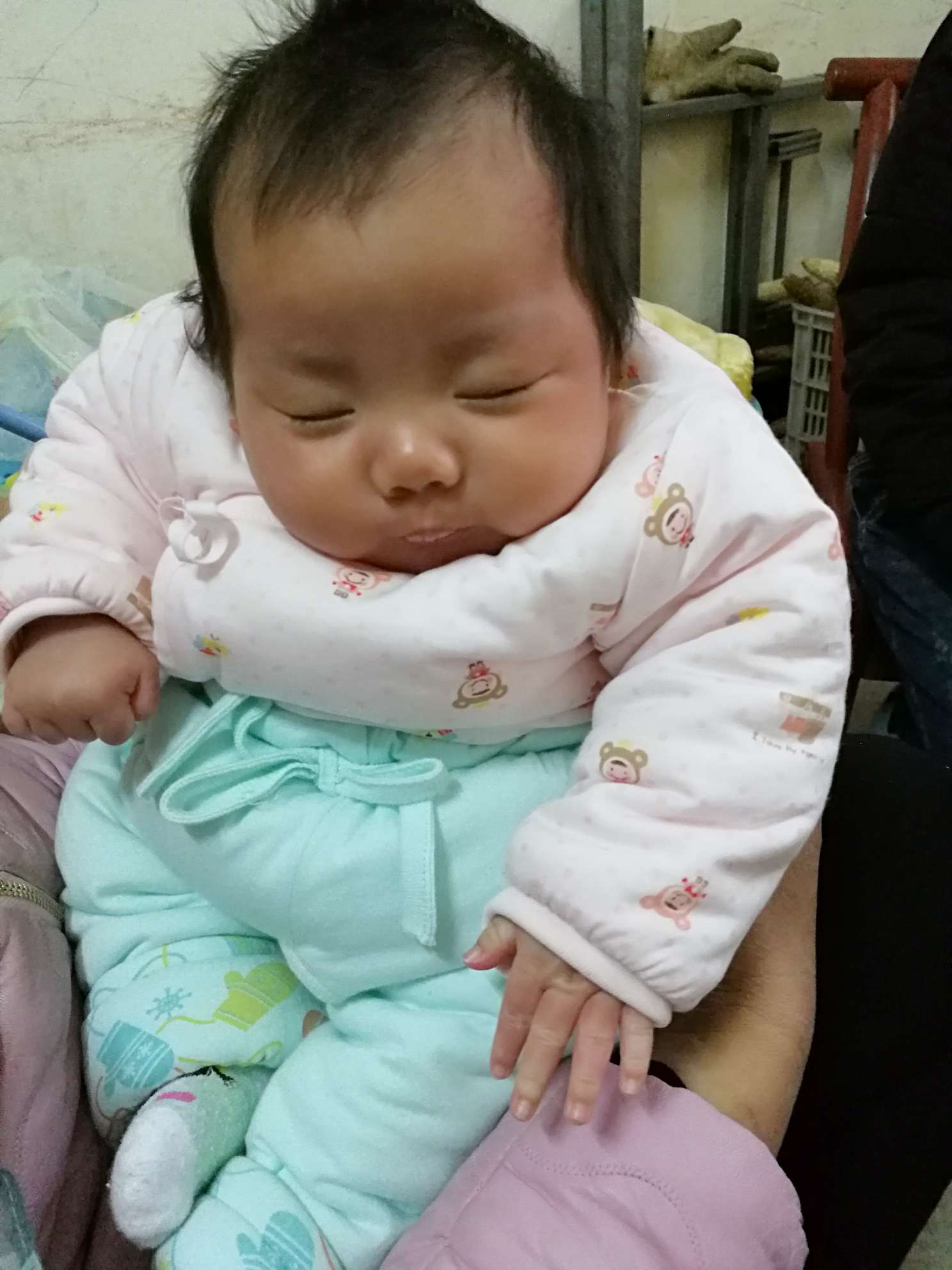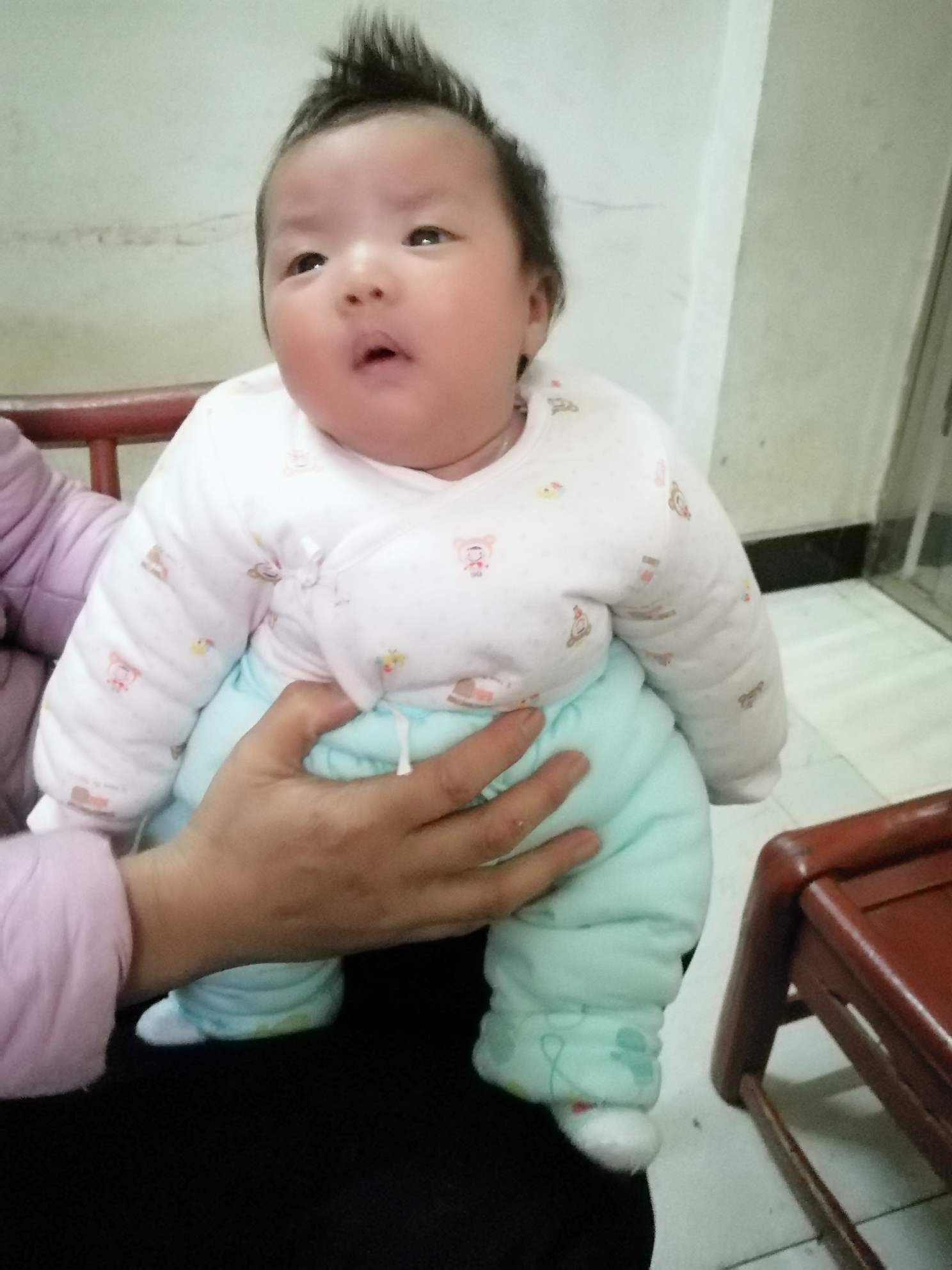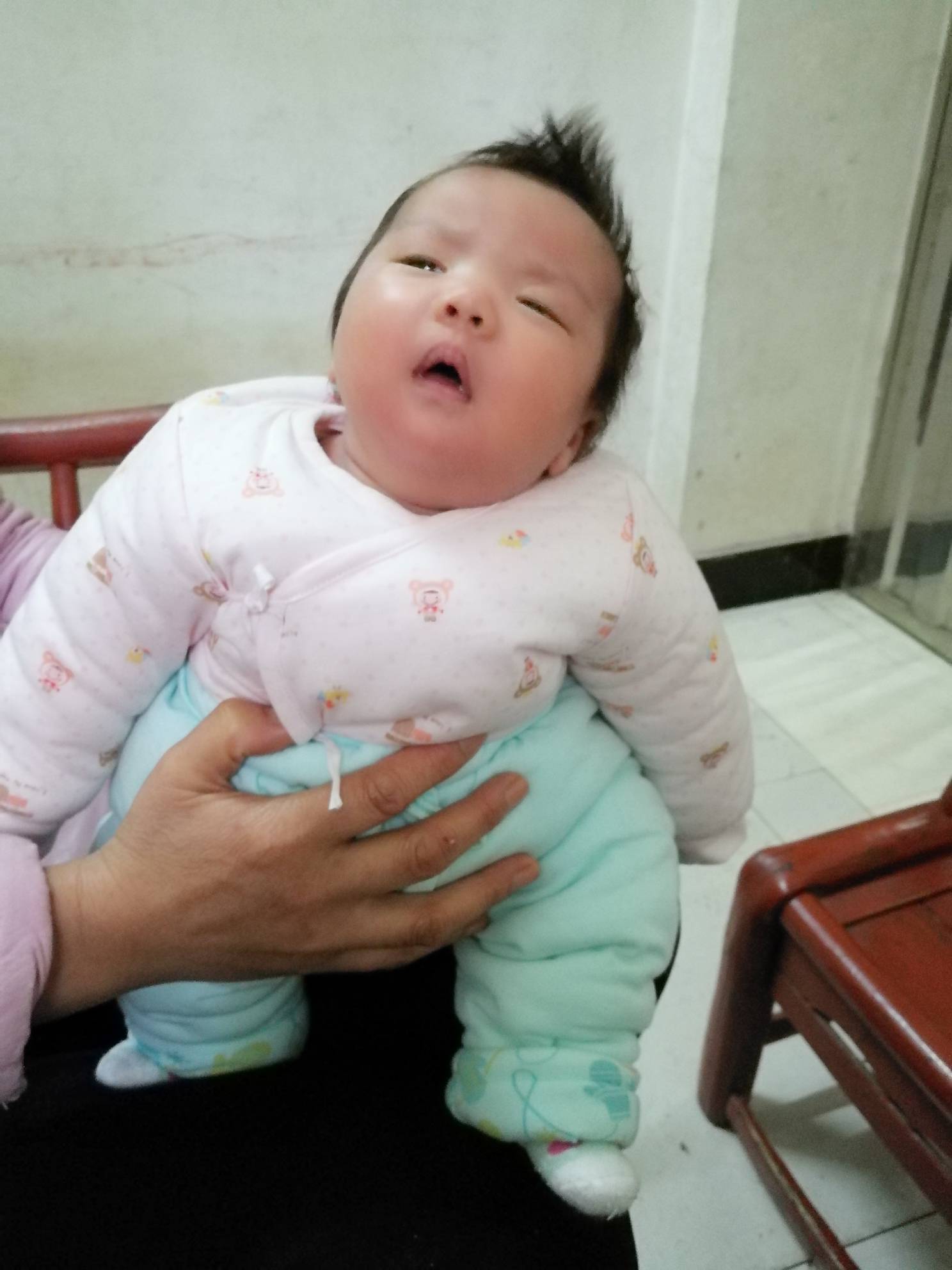 那么小的娃,那个头得用手托着。不要然后她头往后仰,