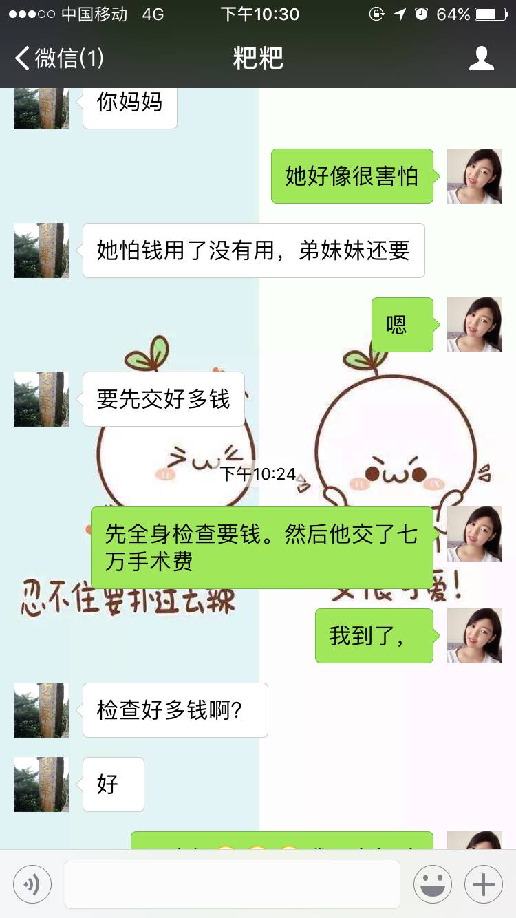 刚刚写完又去看了一下你的帖子,怎么你还想结束自己啊?!你要知道。每个家庭都一样,都会想竭尽全力去挽救家人的生命,即使倾家荡产、居无定所,但是当家人看到你躺在那里,眼睛眨啊啊,可以说话、可以笑,他们在那一瞬间就会忘却所有的负担,觉得这一切都是值得的,会继续为了你努力的付出。如果你选择放弃自己。瞬间你的家人会觉得他们付出什么都没有意义,之前的付出付之东流,甚至会觉得他们在这个世界活着没有任何意义,也没有存在的必要了。你可以解脱了,什么都不用想,你的家人要么在痛苦自责中度过下半生,要么一病不起随你而去,这是你想看到的结果吗?你只有赶快好起来,这才是他们为你付出大量金钱和感情最好的回报。如果病情确实很严重,你不能马上好起来,也希望你能让你的家人每天看到你的笑容,每天嘻嘻哈哈的,哒哒哒哒和小机关枪一样说不停。妹子加油,有什么不开心可以和我留言说说。我这个八零后老奶奶会一直支持你的!