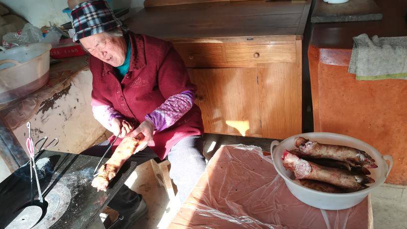 隔壁奶奶家烧猪蹄,前两天炼肉臊子我不在,奶奶说等我没等到