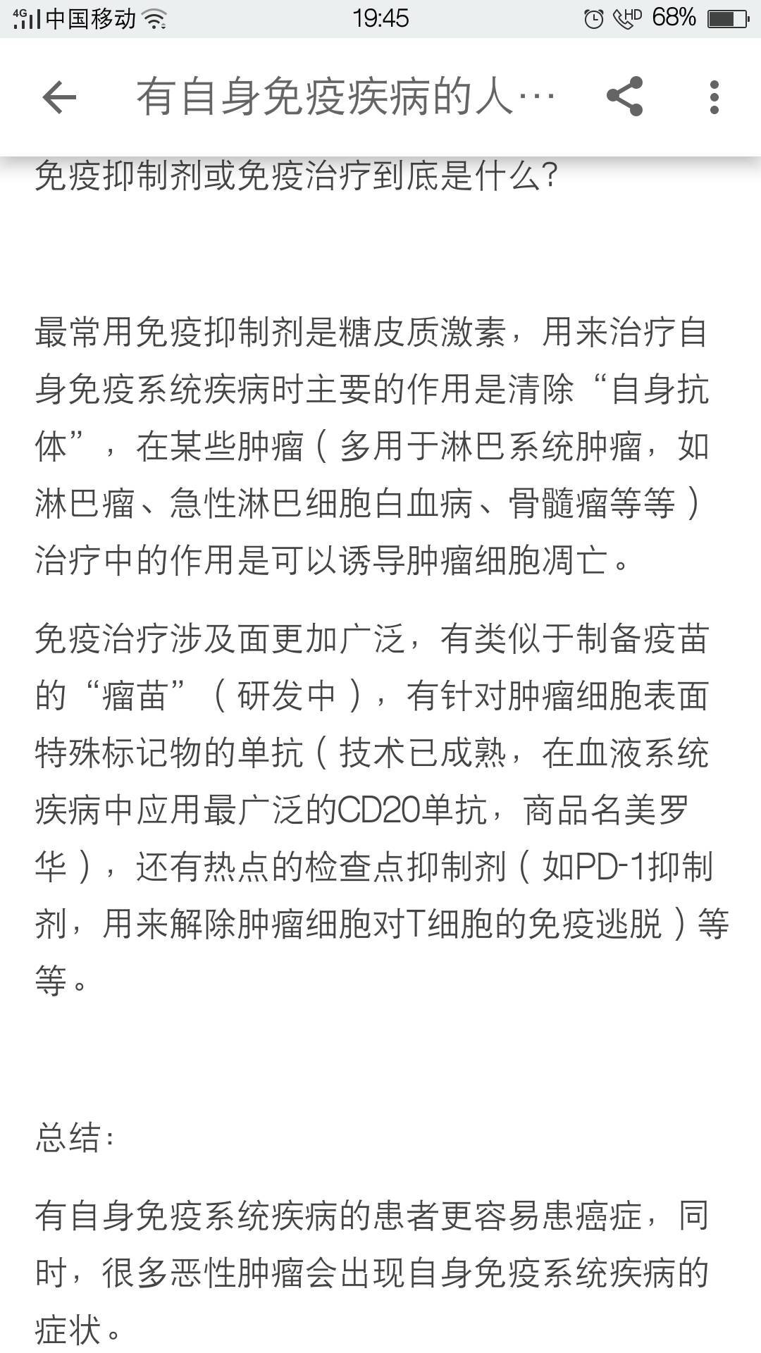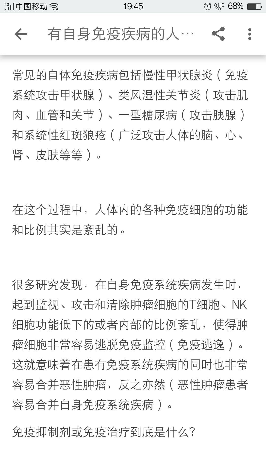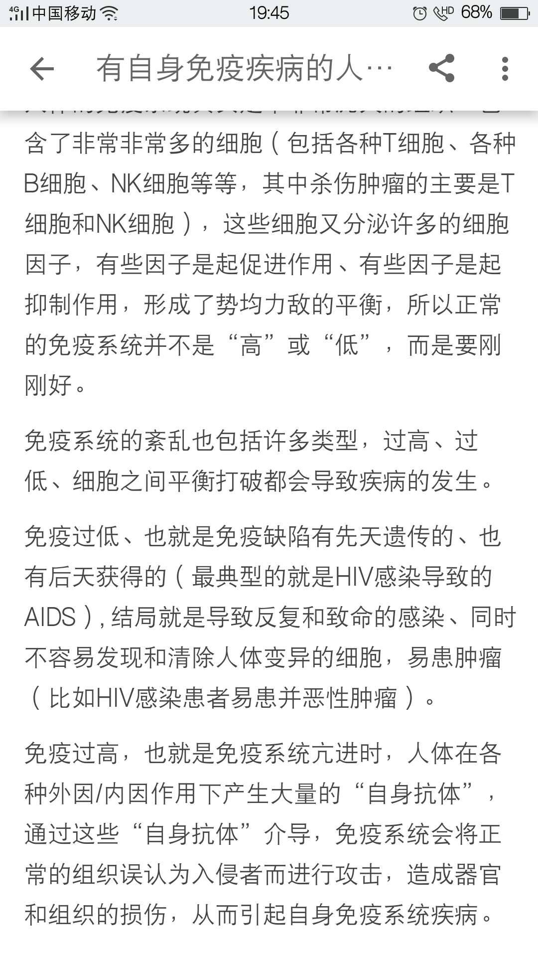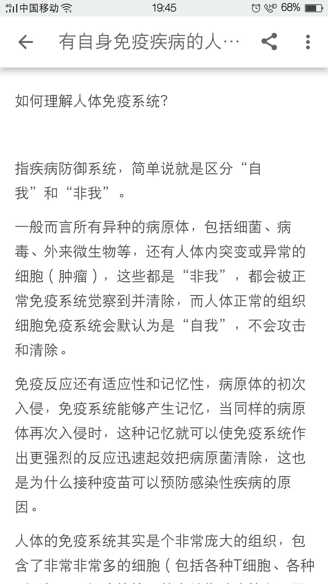 今天看到微信圈里发的一篇HPV检查的文章,刚开始还不太明白,然后赶紧去知乎上查了查,又了解到正常人凭借自身的免疫系统就可以完全不用把这种病毒放在心上,但我我患有自身免疫病的人呢?又该如何是好?于是,我开始查自身免疫病,出现了一系列文章,于是看到了这篇文章,截屏大家看一下