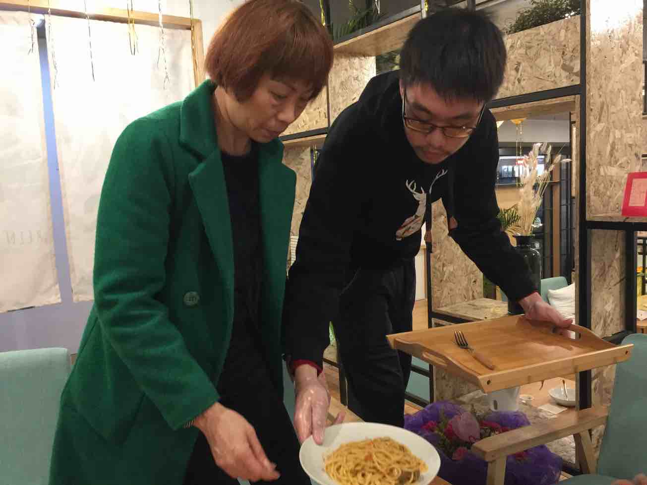 今天,他为我们和他妈妈亲手做了意大利面。