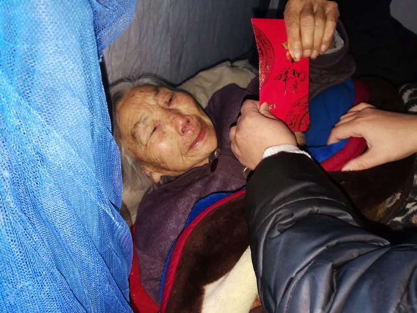 这三户,按规则,由我自己带队送去。看到我去,他们很开心,也很感动。老奶奶躺在床上,一直拉我的手,眼泪汪汪的再三跟我道谢。。。