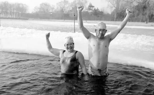 寒冬时节的早晨,能在温暖的被窝儿睡到自然醒,恐怕是大多数人最奢侈的梦想了。但有这样一群“另类”,偏要在寒冷的早晨从被窝里爬起来,然后在天寒地冻的时节穿着泳衣一头扎进冰窟窿里。他们,就是冬泳爱好者。近几年,这个项目越来越受欢迎。一直在(沈阳)北陵公园冬泳基地活动的卢秀芹和董万成,是沈阳众多冬泳爱好者中的一对夫妻档,而说起渊源,还牵出了董大爷为了帮老伴儿对抗病魔,一同冬泳的感人故事。