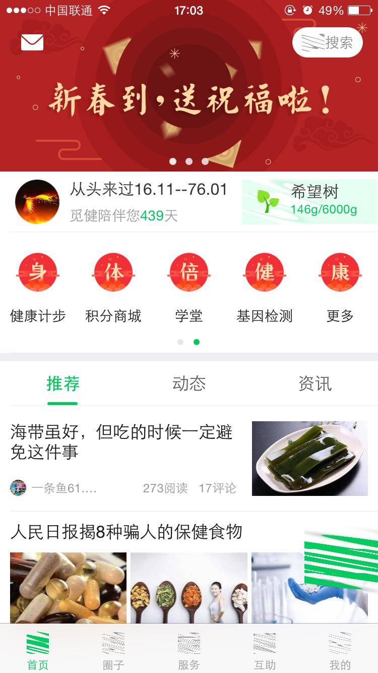 首页的各版块标记改为了“狗年吉祥、身体倍健康”,心里暖暖的!细微的创新与改变体现了所有觅健工作人员的贴心、细心、专业与敬业!感谢所有觅健工作人员的辛勤付出!