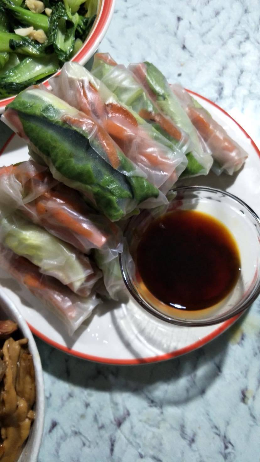 今晚给他做的越南春卷,包了生菜胡萝卜。。他很爱吃。。