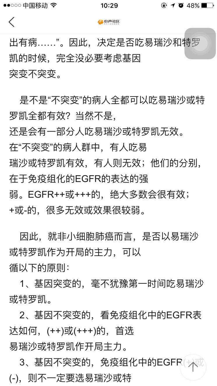 2018年2月21日对我来说是最残酷的一天,在外工作一年没见过爸妈,生活的压力对父母更多的是愧疚是心疼是无奈,每年体检成了我外工作的安心剂,这天带爸妈去体检中心体检,忙忙碌碌把各项检查都做完的时候,不好的消息来了,体检中心打电话问我在哪里,正好我还没走,因为老爸说他感觉自己肺里不好,要有问题也是肺里有问题!真的被他言中了,紧接着护士把我单独叫道一个办公室,说我父亲的肺里有问题,要进一步加强检查,当时的我心里是抱着侥幸的心理,心想就算不好只要手术都不是问题,现在的医学这么发达,都不是问题,然而增加CT副作用比我想象中的还要大,做完之后回到家里我的父亲就开始不挺的咳嗽,第二天就直接感冒了,第二天白天我去医院等结果的时候还在心存侥幸,没想到看到结果的瞬间感觉整个天都要塌下来了,肺癌晚期,骨转移,双肺转移,没法手术,哭了好几个小时找专家挂号,结论是必须住院做穿刺活检,连化疗都没办法做,只能放疗,我内心是很心疼爸爸的,不想让他遭一点点罪,后来经过斗争还是带着他去大医院提取病理,了,不过没告诉父亲事情,就是肺囊肿严重,需要进一步检查,最好经过两个星期的等待结果出来了,肺腺癌,19号基因突变,可以靶向治疗,不行中的万幸,现在看了很多论坛,不知道用易瑞沙还是特罗凯,不过很幸运的是遇到这个平台,可以和更多的朋友探讨,很欣慰,我是小白一枚,现在还在查饮食需要注意什么,吃靶向药物的同时还要吃些什么进行护肝,总之很迷茫,很紧张,从发现到现在整天睡不着,吃不下,医生也很应付到说这几个靶向药物都可以,没有什么其他需要注意的,哎,当今这个社会真是医生惜字如金,病人家属心急如焚!最真实的写照,很迷茫很无助……