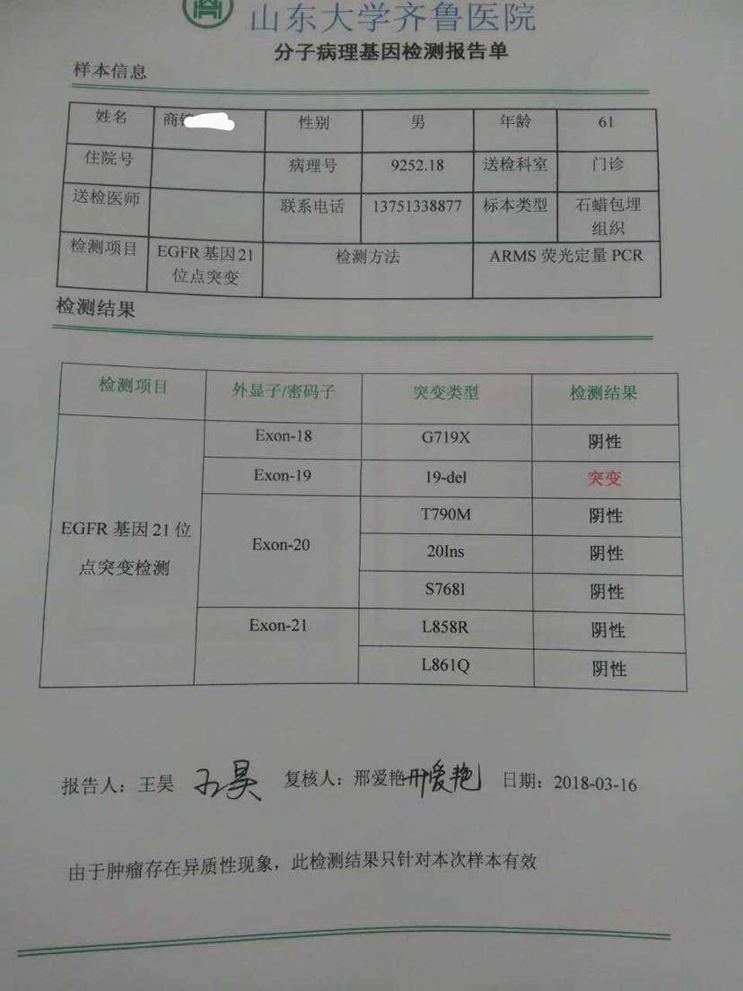 我们也在齐鲁医院治疗,肺腺癌晚期,多处骨转移