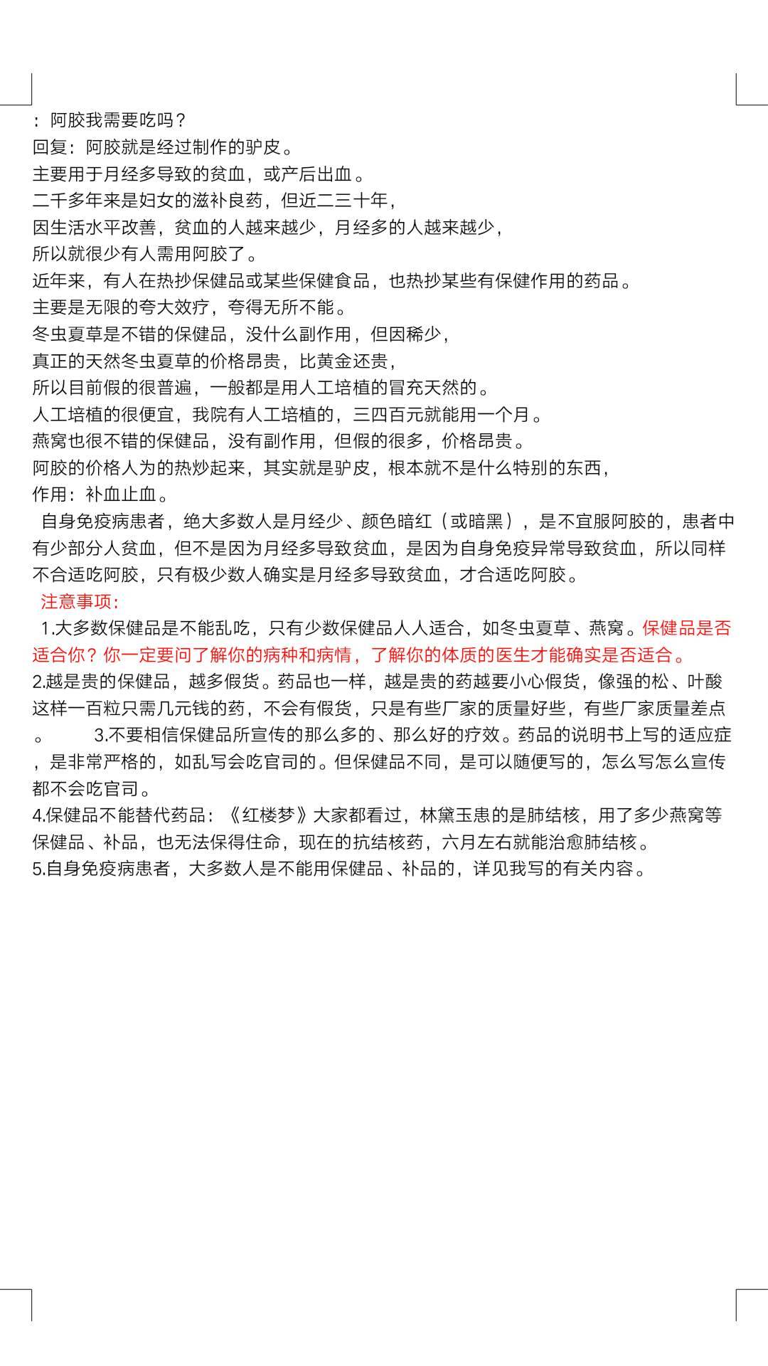 生病之前是小学班主任,正带到毕业班,还差不到两个月就面临着小升初升学考试了!去哈医大确诊时就以为自己是胃炎吐血了,想回自己城市打半个月针就好了,心心念念的都是自己毕业班的学生不能耽误课,还得回去上课,把学生顺利送入理想的初中呢!大夫让住院,我说啥也不听,大夫再三劝说无果,把我支出诊疗室,让我家先生在里面嘀咕了老半天不知嘀咕了些什么?我还以为这一吐血,没准得肺癌了,在跟我先生料理后事呢?🤭在门外焦急地等啊等,终于我家先生出来了,严肃地对我说:“你回不去了,必须住院,大夫说你得的是结缔组织病的一种——系统性红斑狼疮。”我一听心想:自己怎么这么倒霉,心里真是五味杂陈,不知道当时是什么感觉了?就知道我三年七年前得的也是这个病,四处求医问药,钱没少花,弯路也没有少走,最后还是无法根治!于是,我先生就谨遵医嘱,在前面急急忙忙地给我办住院,我在后面边紧赶慢赶边心里盘算着不能听一个大夫的一面之词,我先给无微不至陪护和照顾我三娘看病的姐姐打电话询问我三娘是怎么治的?我姐告诉我最后是在哈医大二院找一位风湿科的著名老教授给治的,现在病情稳定的很好!让我也去那检查确诊治疗,我先生不愿意再给我折腾,就没听,直接在哈医大一院给我办住院了,也不懂那么多,一个三十岁左右的年轻小答复给我接的诊,成为了我的主治医师,在那住了二十天院,自己感觉没好利索,但因回家心切,心里还挂念着我的儿子和我那群即将毕业的学生,在大夫的允许下就迫不及待地出院了。当时,我们领导还挺理解我,亲自打电话告诉我出院后也不用上班了,我的学生他已经安排好别的老师带了,在家好好养着,养好了,准备下学期接新一年就可以了!我心里真是无比的感激,不知说什么好!出院后,在家养了一周,症状还是没有减轻,于是,我三娘家那个我姐姐和我先生又陪着我去哈医大一院复查,检查结果刚出来,那的主任医师又让我住院,我说在你们这刚住了二十天出院,怎么还让我住院,那近四万元白花了?她就说让我住院!我姐说我们出去商量商量!告别那个主任医师,出来后,我姐和我先生商量好了说回家喝酵素吧,一边吃药一边喝酵素增强免疫力促进药效吸收,慢慢指标就正常了!我三娘也是一直吃药加喝酵素促进药效吸收,慢慢病情才稳定的!于是,我就回家边吃药边喝酵素,一周后真的好多了!我同事又给我打电话告诉我一个得了十年红斑狼疮的病友电话,让我跟她联系一下,看看她怎么治疗的?于是我就联系上她了,多亏联系上这位病友,她告诉我也是在哈医大二院找的以为老中医治的,现在十年了,一直很稳定,药也降到最低量了!然后,我姐姐和我先生又陪着我去见了医大二院的任教授,她看了我的病例,给我调了一下药,我吃了一个月后去复查,果然好转了很多,任教授都不太敢相信她给我调完药后效果好的这么快,我们都说是她医术高超!我一直听我姐姐的在同时吃她给我配的金健康山药粉喝酵素,我没敢跟教授说!不过从那之后,我只要一直把药和这些保健品一起吃,去化验指标就正常,当我有两个月不相信不吃的时候,再去指标就不正常,以后我就再也没敢停过保健品,二次住院时,一位病友已得了十九年了,跟我说,她现在大多吃的也都是保健品,医生给开的药早就减到最低量了,已经吃的很少了!就是保健品太贵,一般家庭负担不起啊!啰嗦了这么多,主要介绍了一下自己求对医生的心路历程!