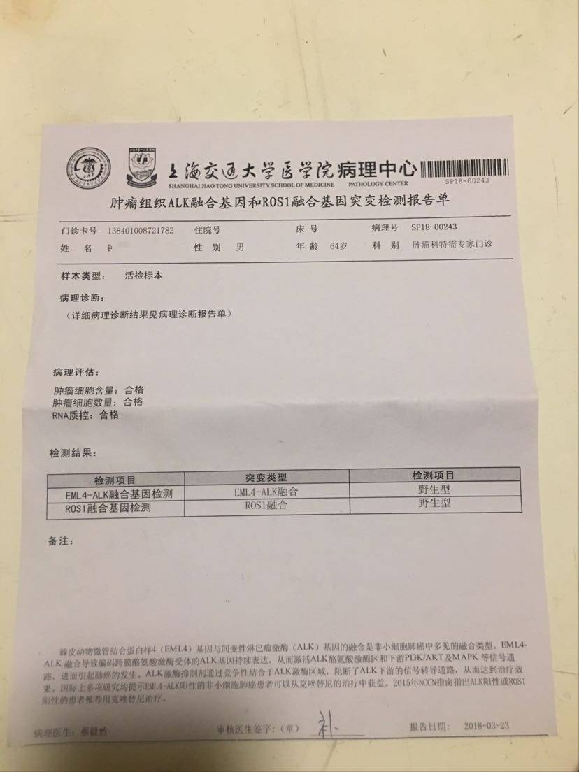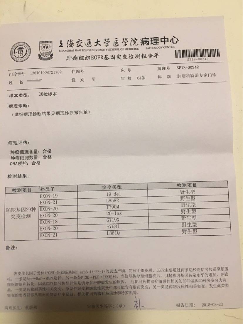 陈波医生基因检测还有一些靶点没测,建议完善基本的肺癌八个热点驱动基因检测