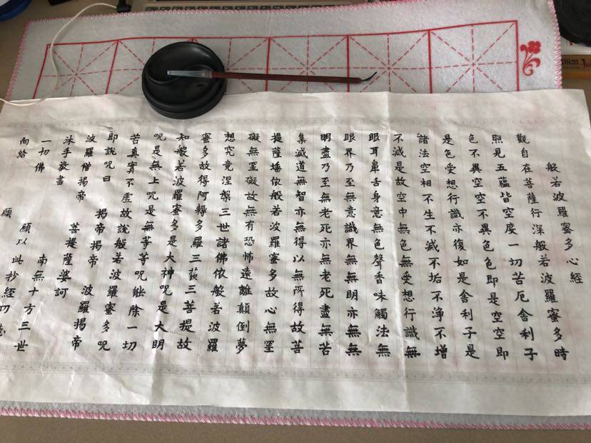 今天第一天抄写,也是自小学后第一次写毛笔字,真心的累呀,但是心情是不一样的,那心情是前所未有过的平稳,不求大幅大德,只求平安,平庸,平凡的过完余生!