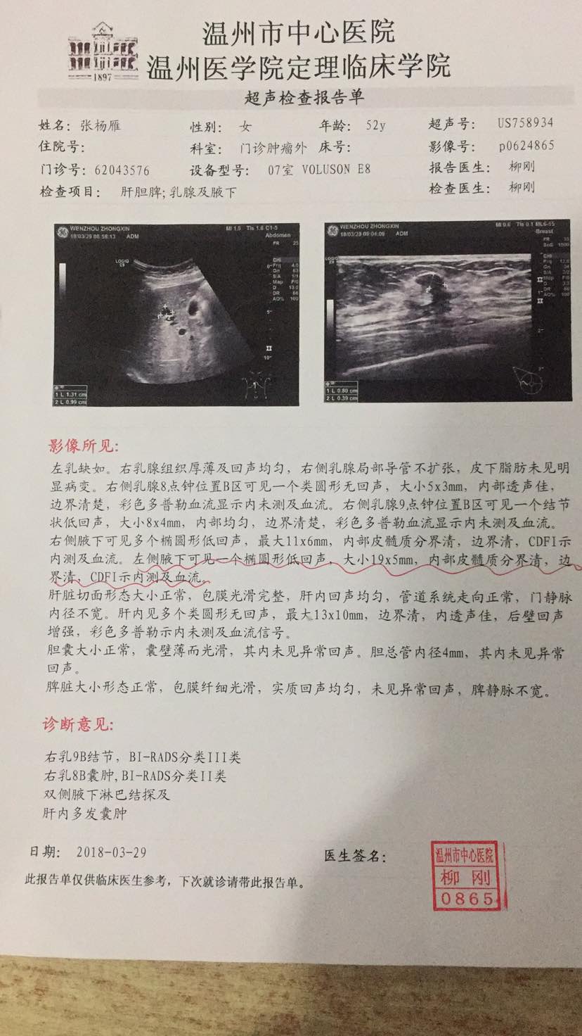 老妈昨日是第一次复查,战战兢兢地看着老妈做完所有检查,一拿到报告单,看到动过手术的左乳有一个淋巴结,心就慌了,但由于主治医生今日有手术,是助手医生看的,她就说接下来记得随访就行,如果随访结果有病变,就要处理,听了她的话,我还是无法镇定,还是很心慌,网上看了各种科普,依旧无法心安。佩服群里的病友们,你们都是战士!