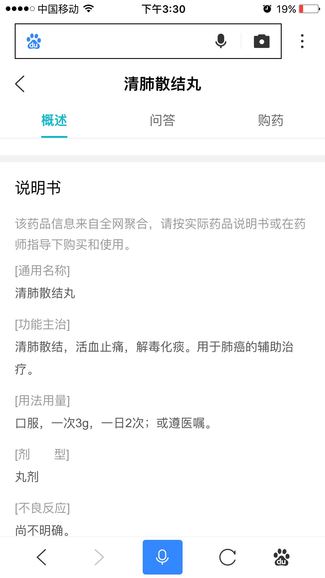 这是清肺散结丸的说明书,它只能用于肺癌的辅助治疗,而不是用于肺癌的治疗。即使能消除结节,也只是消除良性结节,对癌症结节它是无能为力的。昂贵的价格利润空间大,有人推荐就不难理解了。