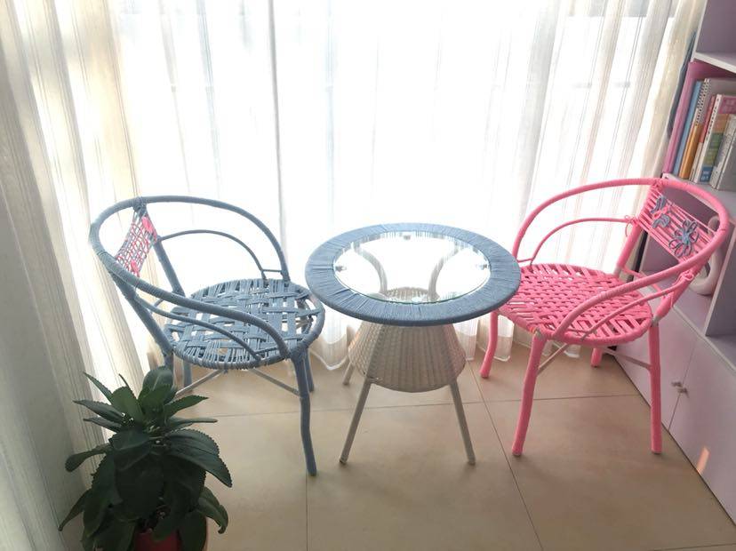 还有家里阳台上的凳子,买了两年多一点,塑料条风化了,把以前风化的全部给拆了,在网上买了编织绳缠起来的,不过好像这种的时间久了也会风化吧🤦♀️,这次聪明点了,以后窗帘都拉上,应该能防止风化现象发生。