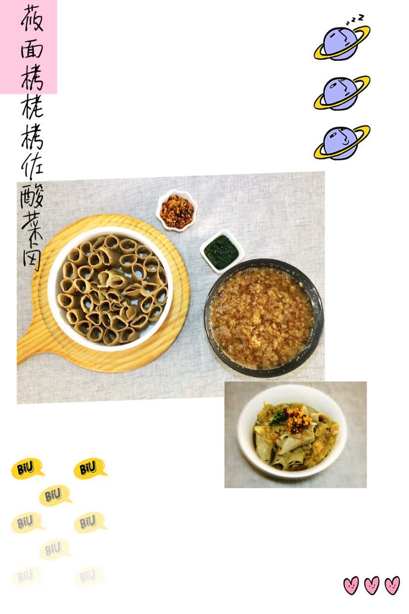 莜面用开水烫面,和好面不用醒面,分成小剂子,在一个光滑的表面用掌根推成薄片,提起面片绕食指卷成一个卷,立在蒸屉里,依次码好,上气后蒸十分钟;酸菜切末,起油锅,先下肉末,炒熟后加入酸菜末炒香,加糖和酱油,翻炒均匀,加水,出锅时加少许盐调味;再佐以韭花酱和辣椒油。
