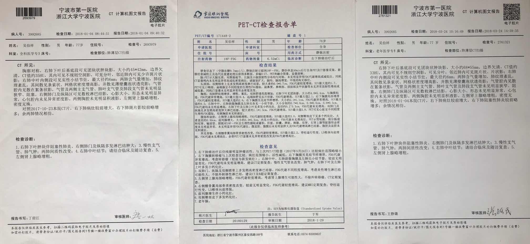 快一年了、经历了1次化疗、9次Nivolumab、3次Durvalumab、然后这次检查肿瘤比初诊时还大、很失望吧!容许我唠叨会:17年5月24日确诊肺鳞、忙不停碲入durvalumab临床组、老天不帮忙空窗等了一个月进了对照组、一化后(健泽加顺铂)骨髓抑制厉害我就直接退了组(因有再障史怕旧魔复发)。8月14日去奥门打了第一次Nivolumab、半个月打一次、四次后效果甚佳肿瘤缩小几乎一半、八次后原灶继续有效但出现新灶、然后又补了一次、继续进展、故停了Nivolumab换上Durvalumab、使用期间因副作用有延长几天、在3月24日做检查评估、肿瘤比初诊时还大、无法表达!不良反应:Nivolumab期间:基本无副作用、只轻微的伐力疲劳、有时轻微的肌肉酸痛、可以轻松的承受、还每天散歩经常出去钓鱼。durvalumab期间:第一针后的一个星期、怕冷畏寒全身酸痛特别厉害、难受到无法表达无法承受的程度、期间几次哀求我能不能给他再换回Nivolumab、看着他每天的痛苦、我何尝不想啊、我比你还痛苦、但我又能奈何?使用的十几天后血糖开始不正常、医生建议胰岛素干扰、现在血糖正常范围内!与肺肿瘤进展向反的奇怪现象:在使用durvalumab后的半个月左右开始咳嗽少了恨多、痰也少了、到现在为止咳嗽几乎一整天都没有了、痰一天两三次这样、最近这些日子人也重了五六斤、这两天怕冷畏寒也缓解了恨多、貌似满血复活这几天又每天出去散歩逛街逛超市买菜等....有人建议我这样情况是否有假进可能?但医生说这可能性概率不大、当然我也多么奢望是假进、但我经历过现实的残酷、奢望归奢望吧、毕竟是奢!本来清明前需要打针了但因为CT进展准备换方案、考虑到清明要出去踏清几天就把方案和治疗延迟到清明后、这些暂时天空着、后面的治疗方案和效果我会继续跟进!感谢觅友们的鼓励和记褂、感谢圈主的关心问侯、感谢医生的帮助和治疗!感谢有你们🙏