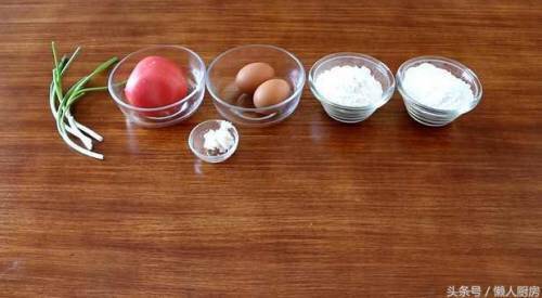 玉米淀粉,木薯淀粉,西红柿,鸡蛋,葱,盐,油,猪油,热水。