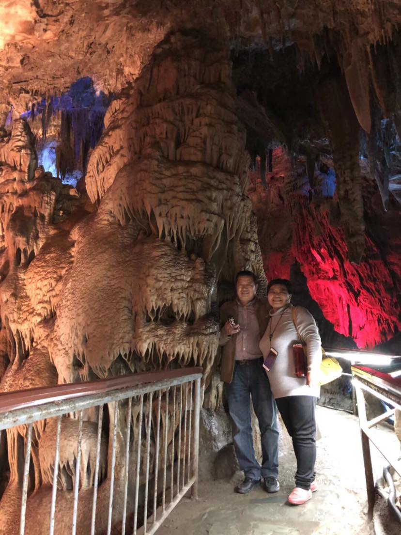 我们到景区时才八点多,路边的店铺还都没有营业,路上也没看见有几个人,到了洞口,女儿买完票,我们就进洞了,里面共有四层,都是自然生成的景观,我们在里面大约走了三个多小时,到出口时十一点了。爱人的朋友打电话说,他到饭店了,让我们过去吃饭,我们到饭店,菜都点好了,吃完饭女儿开着车,我们就回来了。